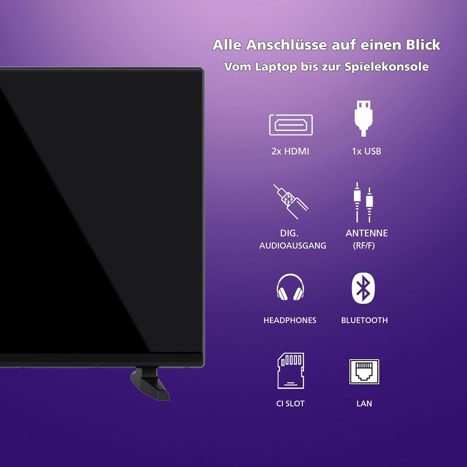 • ПОВЕЧЕ ОТ ПРОСТО ТЕЛЕВИЗОР - Плоският екран е с диагонал 80 см (32 инча). Вграденият троен тунер ви позволява да приемате програми чрез антена (DVB-T2), кабел (DVB-C) или сателит (DVB-S2), без да е необходим допълнителен приемник.
