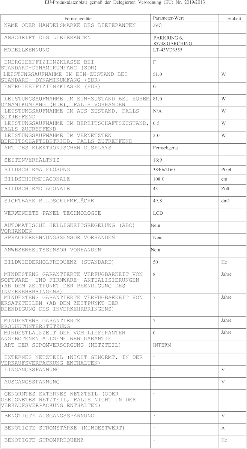 37 Kilowatt Hours Per Year pro Jahr, ausgehend von 4 Stunden Betrieb an 365 Tagen. Der tatsächliche Energieverbrauch hängt davon ab, wie der Fernseher genutzt wird.