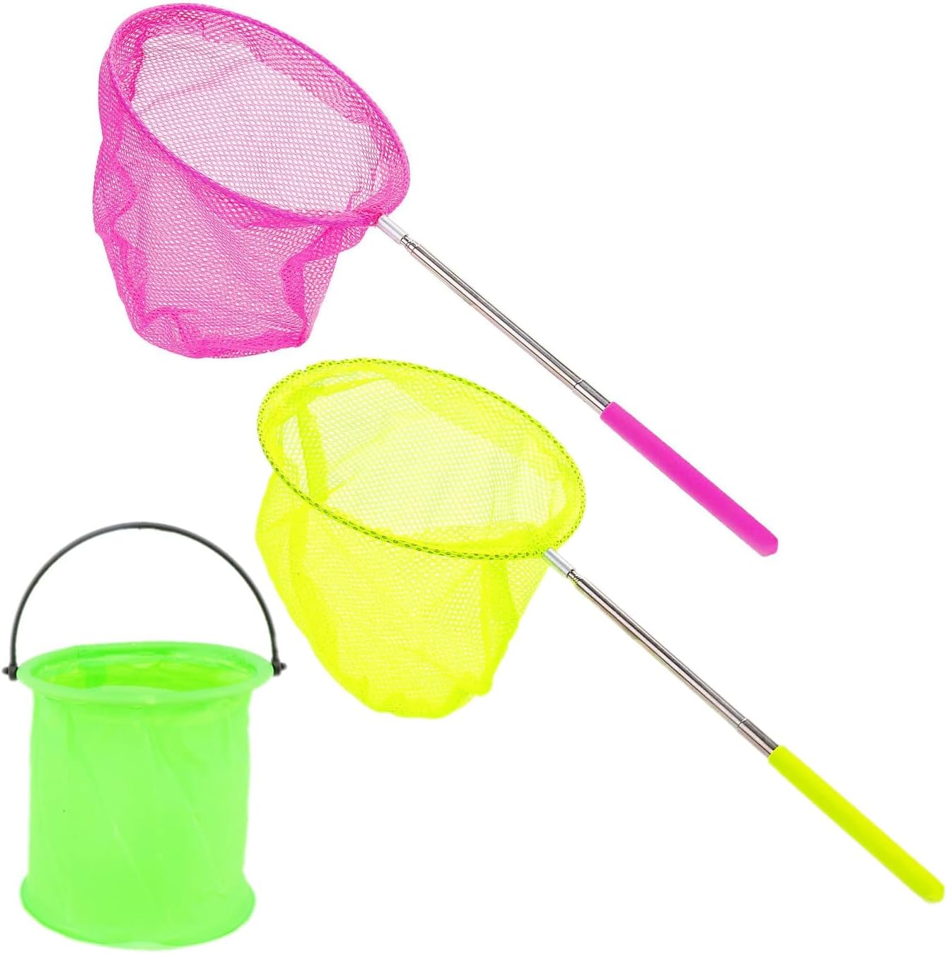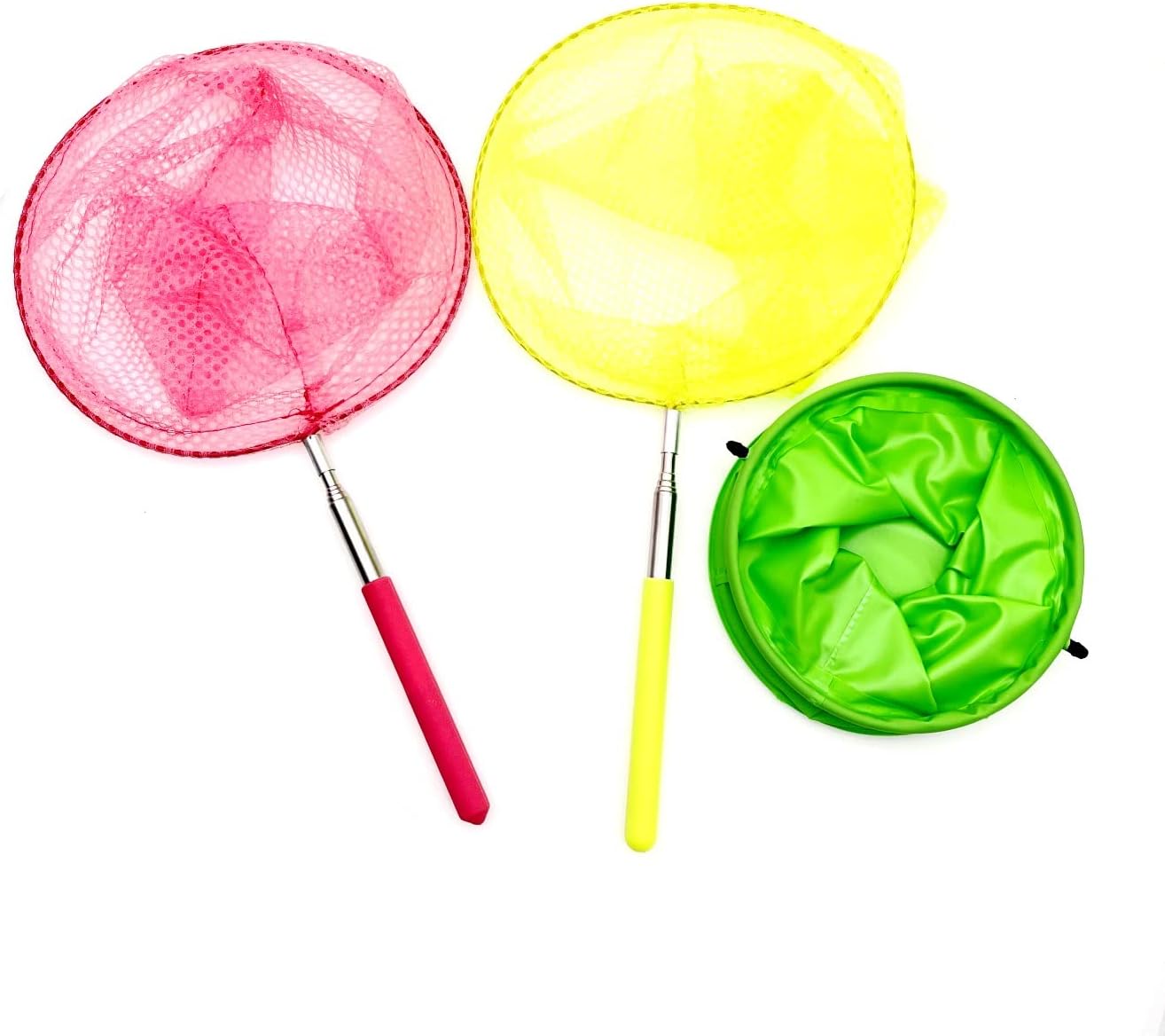 2x детски риболовни мрежи за езера с дълги дръжки (1x розова, 1x жълта),