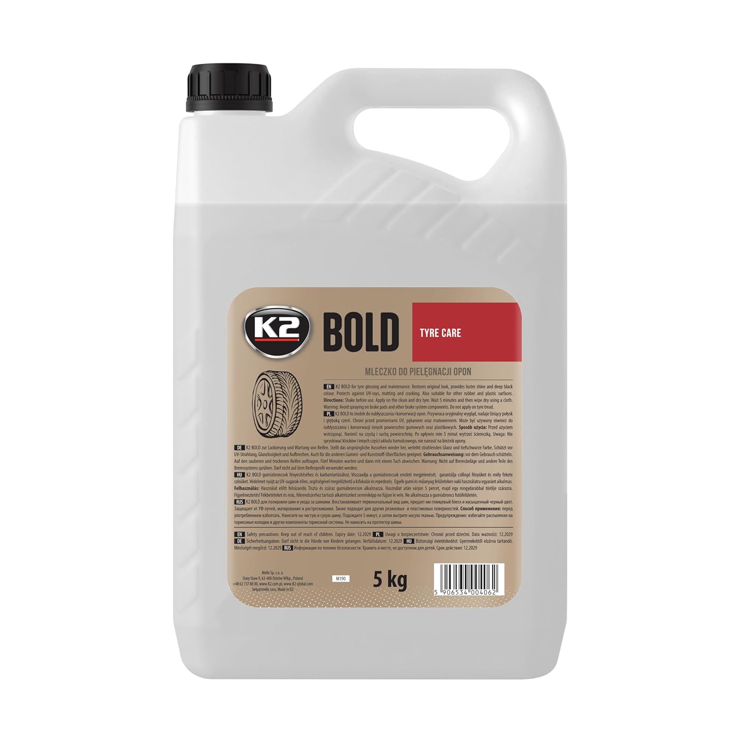 K2 Bold за полиране на гуми за камиони и автомобили, гланц за грижа за гумени гуми, пяна за гуми 5 литра