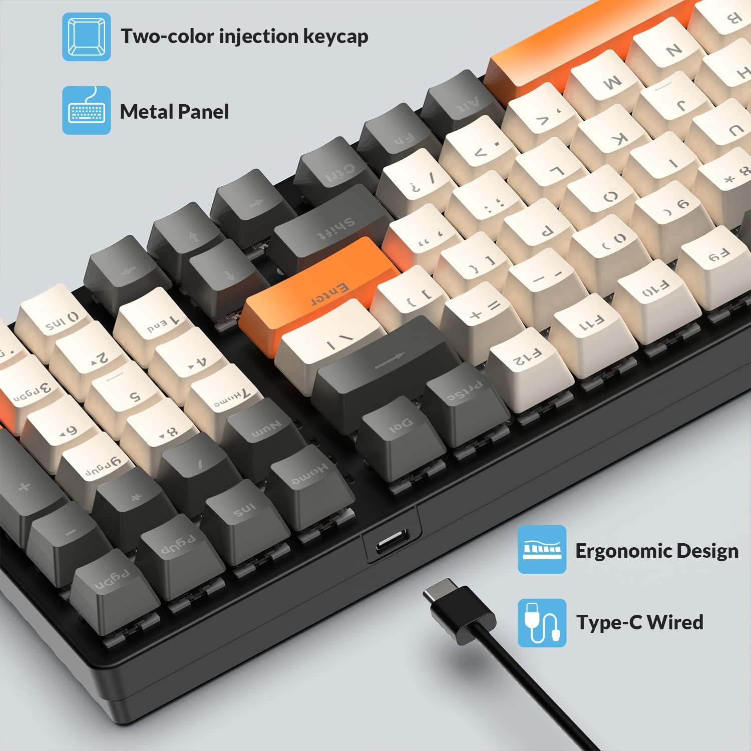• Ултракомпактен дизайн с цифров клавиш. Компактната геймърска клавиатура с 98 клавиша е с перфектен размер и е идеална за всякакви среди, бизнес пътувания, офис или дом. Височината на клавишите е проектирана съобразно ергономичността и не се уморява лесно след продължителна употреба. А размерът е компактен и лесен за носене.