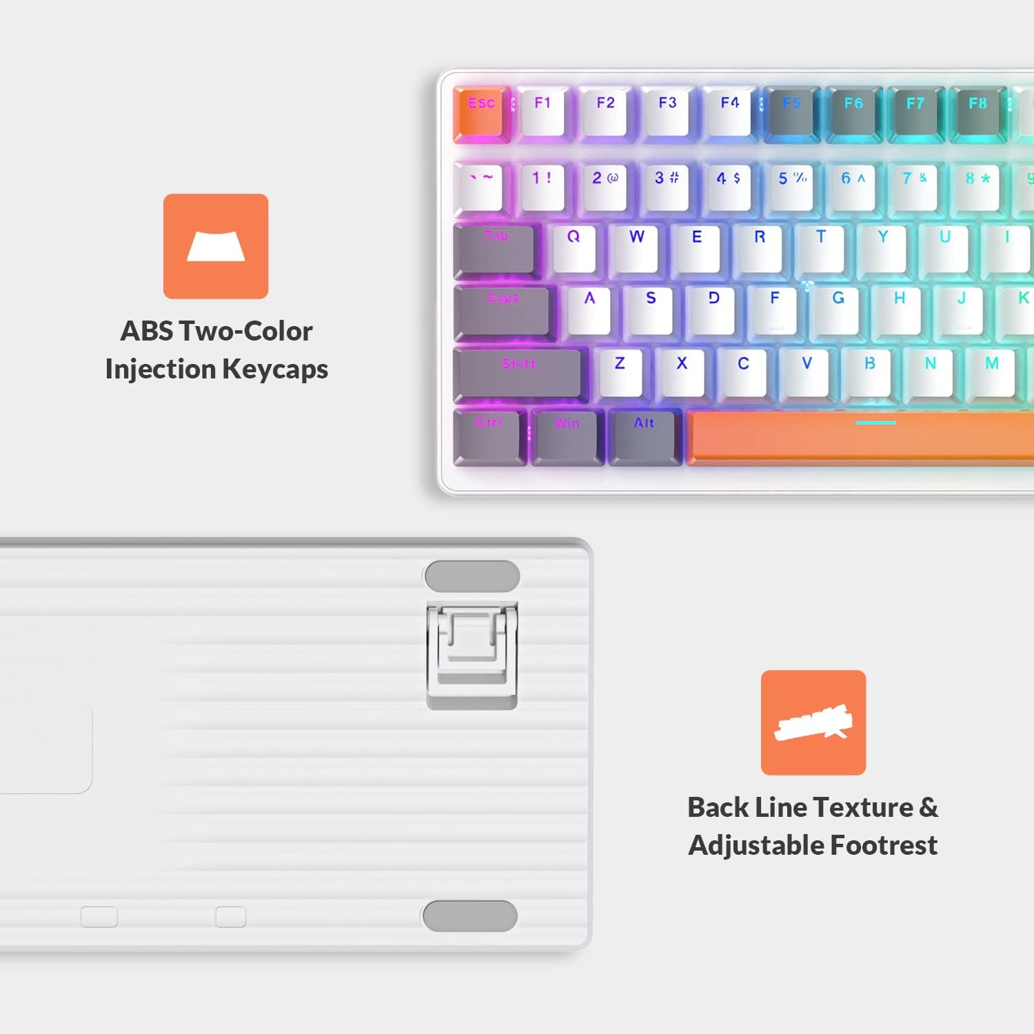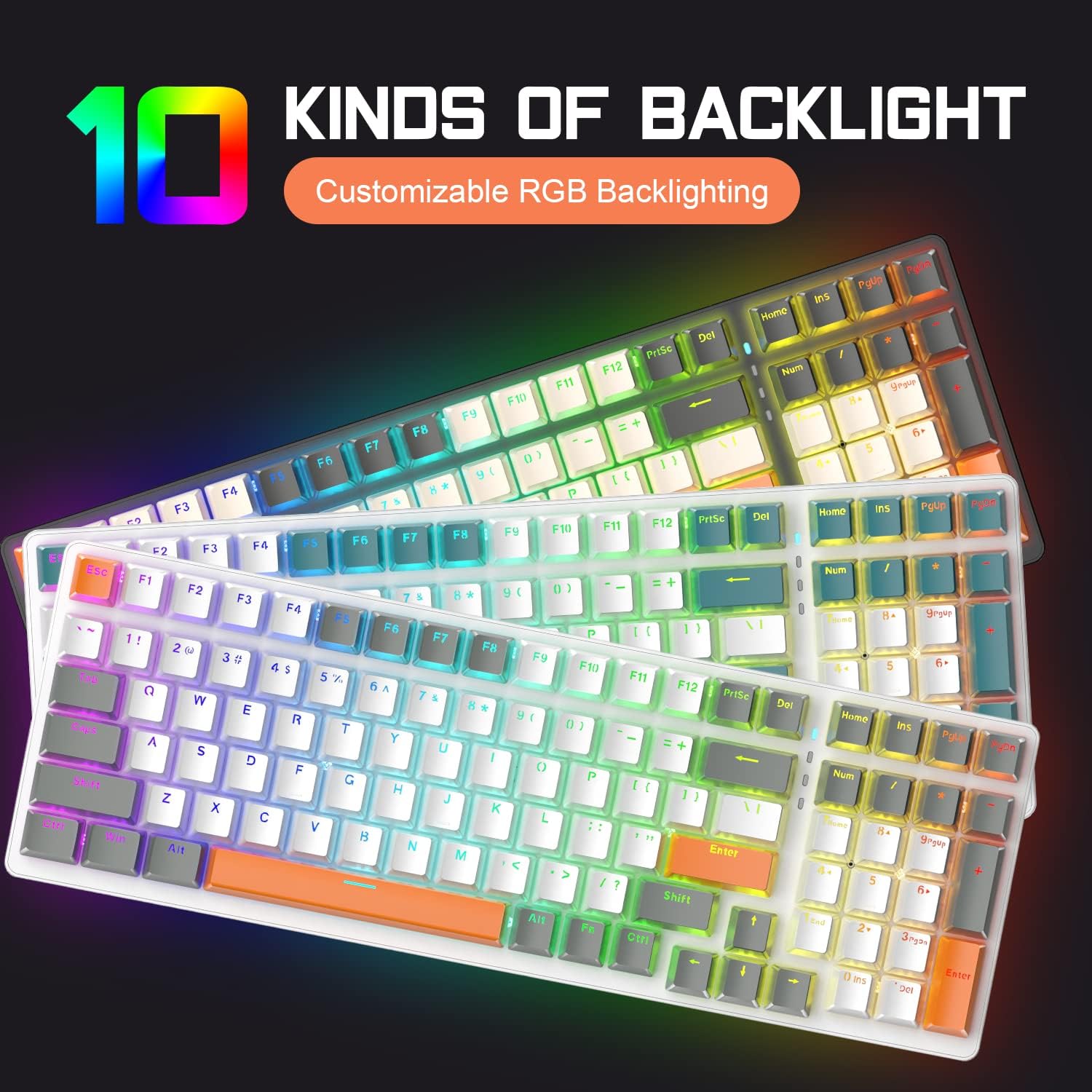 • Механична клавиатура с RGB подсветка и сини превключватели. 10 режима на подсветка, двуцветни ABS инжекционни клавиши, кристално равномерна подсветка. Класически сини превключватели с 50 милиона щраквания и тактилна обратна връзка. Идеална за писане в офиса или игра на игри. Модерните многоцветни клавиши ви правят уникални.
