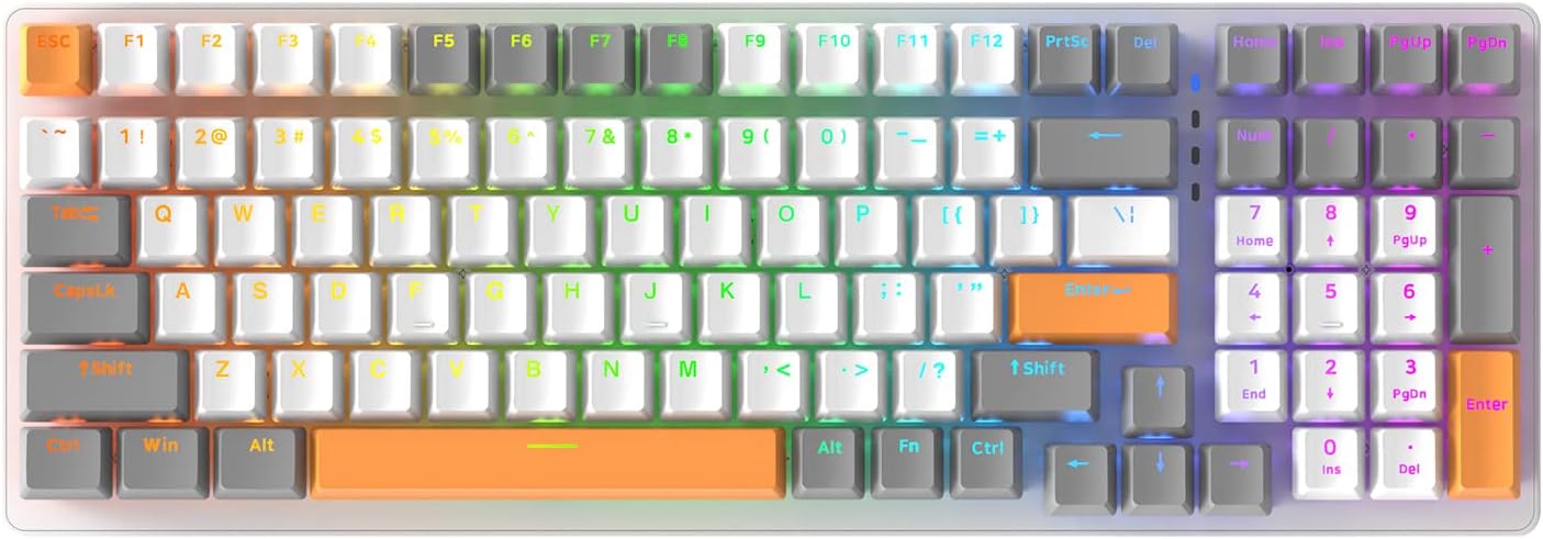 • Ултракомпактен дизайн с цифров клавиш. Компактната геймърска клавиатура с 98 клавиша е с перфектен размер и е идеална за всякакви среди, бизнес пътувания, офис или дом. Височината на клавишите е проектирана съобразно ергономичността и не се уморява лесно след продължителна употреба. А размерът е компактен и лесен за носене.