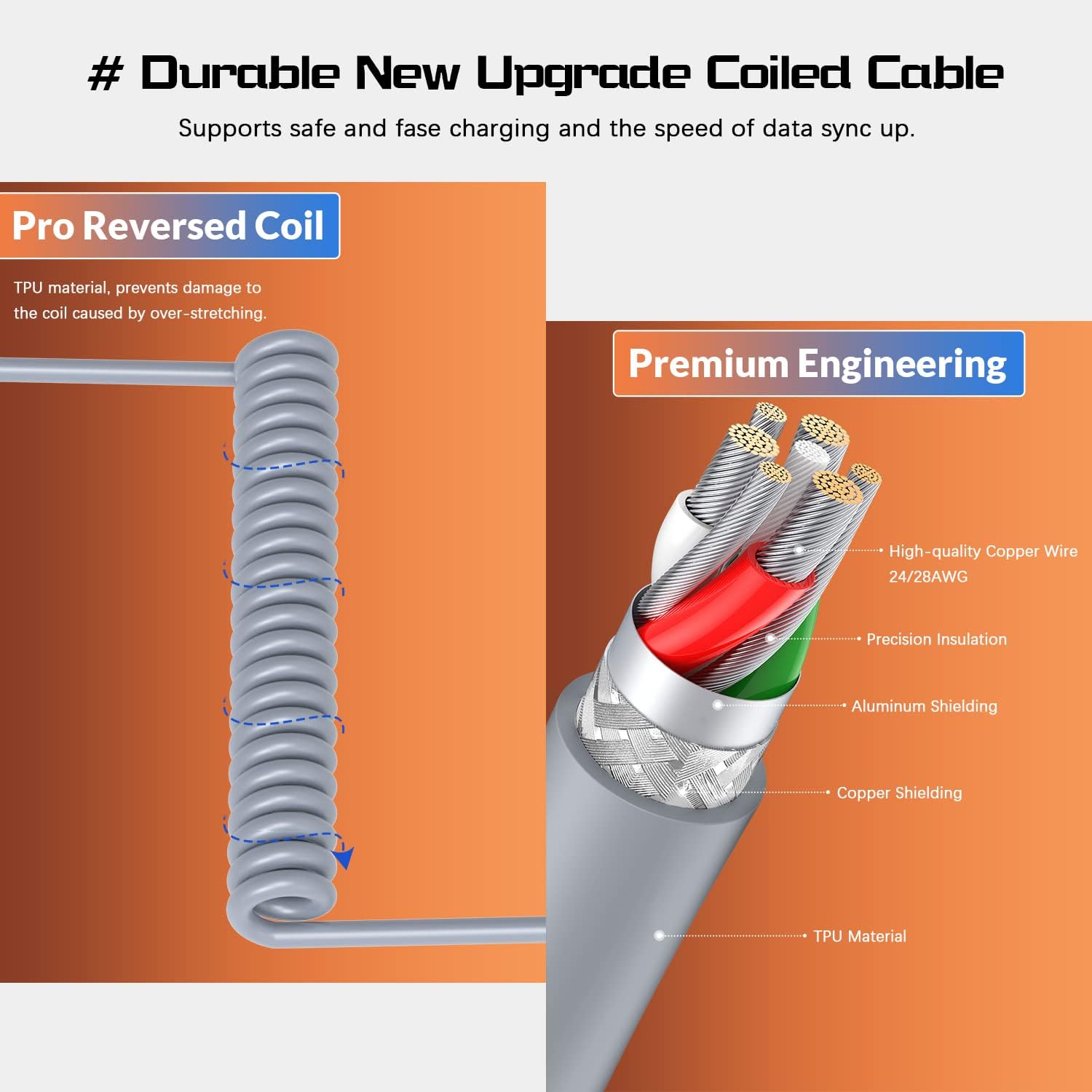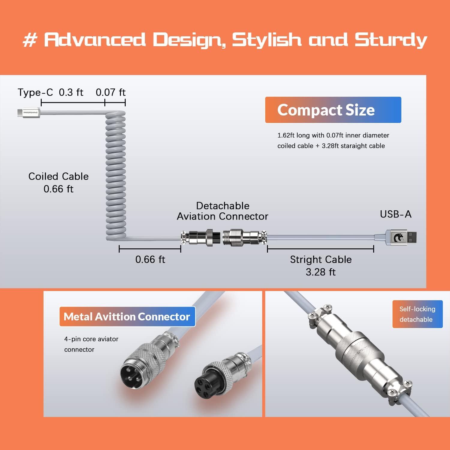 • Професионален гъвкав спирален кабел. Клавиатурата се предлага с висококачествен спирален кабел, има четири висококачествени медни проводника и алуминиево фолио като жила. Размерът на центъра е 5.0, трансферът на данни е по-ефективен и стабилен. Здравият и еластичен TPU материал осигурява по-висока устойчивост на натиск и еластичност от стандартните кабели, осигурява здраво подреждане на кабелите и гъвкаво управление на кабелите.