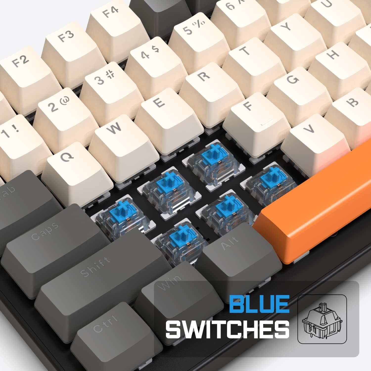 • Механична клавиатура с RGB подсветка и сини превключватели. 10 режима на подсветка, двуцветни ABS инжекционни клавиши, кристално равномерна подсветка. Класически сини превключватели с 50 милиона щраквания и тактилна обратна връзка. Идеална за писане в офиса или игра на игри. Модерните многоцветни клавиши ви правят уникални.