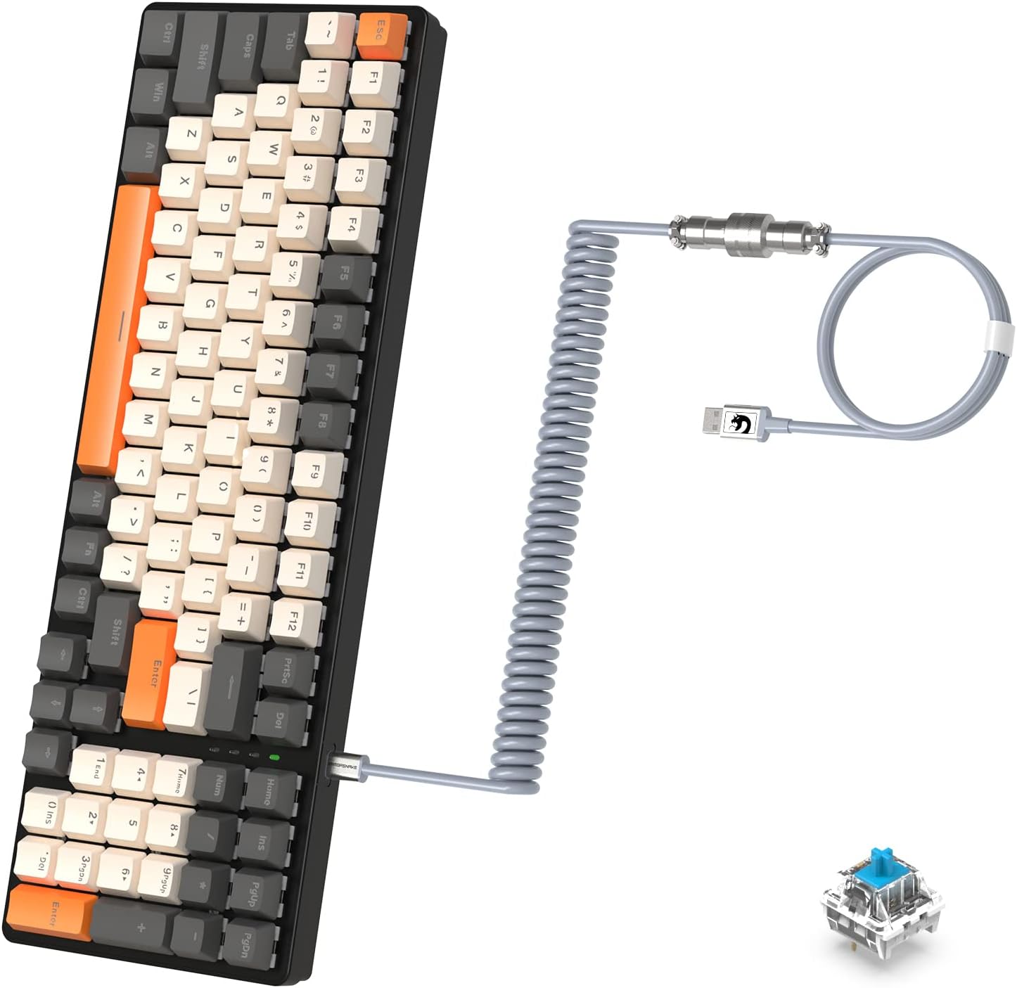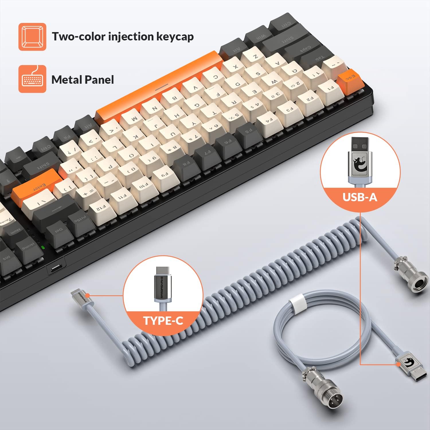 K3 Pro механична клавиатура, кабелна, ултра компактна, 98 клавиша, RGB осветена LED подсветка, син превключвател, USB спирален Type-C към USB-A, TPU пружинен кабел, подвижен метален авиационен щепсел.
