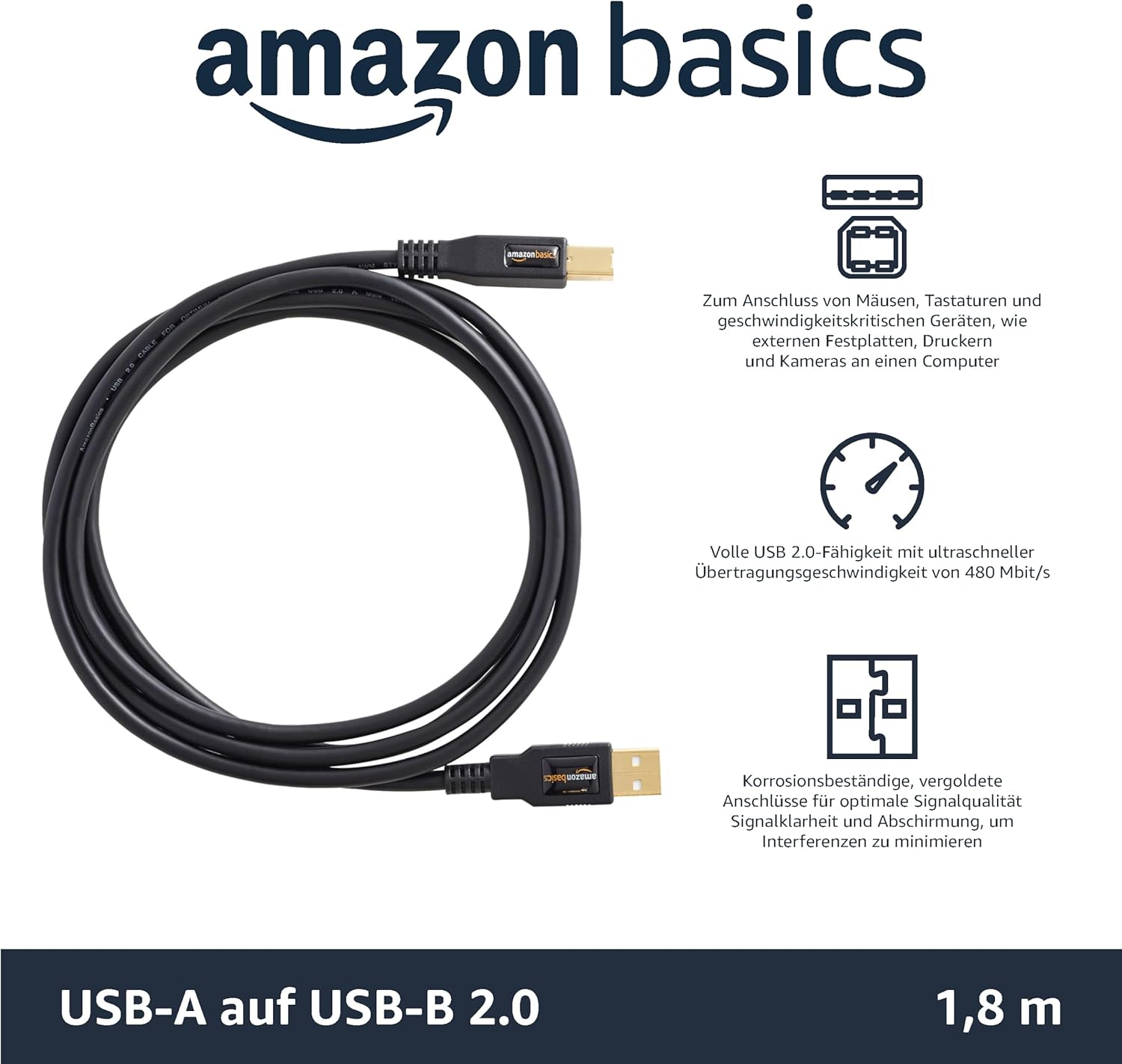 • 3-метров мултиекраниран високоскоростен USB 2.0 кабел с USB тип A мъжки към USB B мъжки