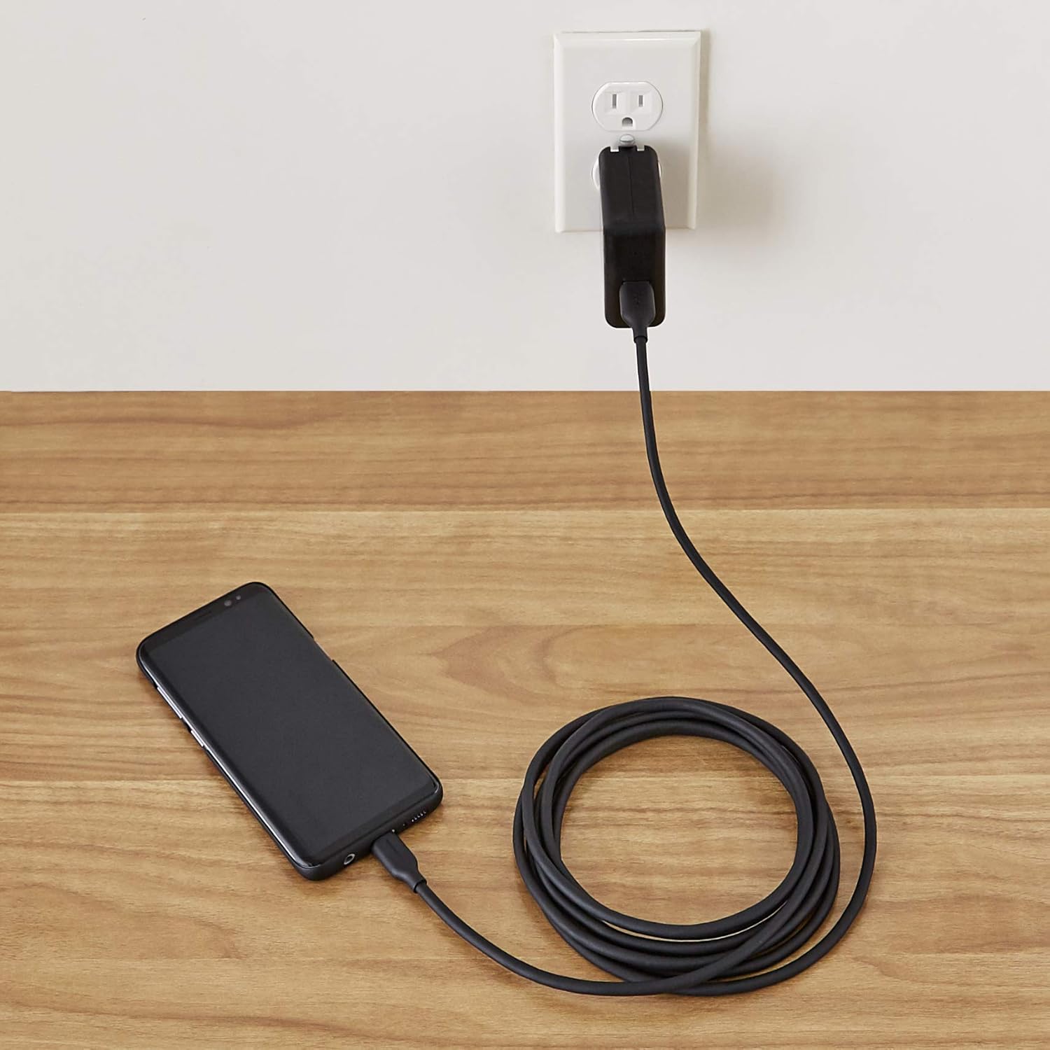 Кабел за бързо зареждане Amazon Basics USB C към USB A 2.0, скорост 480 Mbps, USB-IF сертифициран за Apple iPhone 16/15, iPad, Samsung Galaxy, таблети, лаптопи (10 фута/3 м) - черен