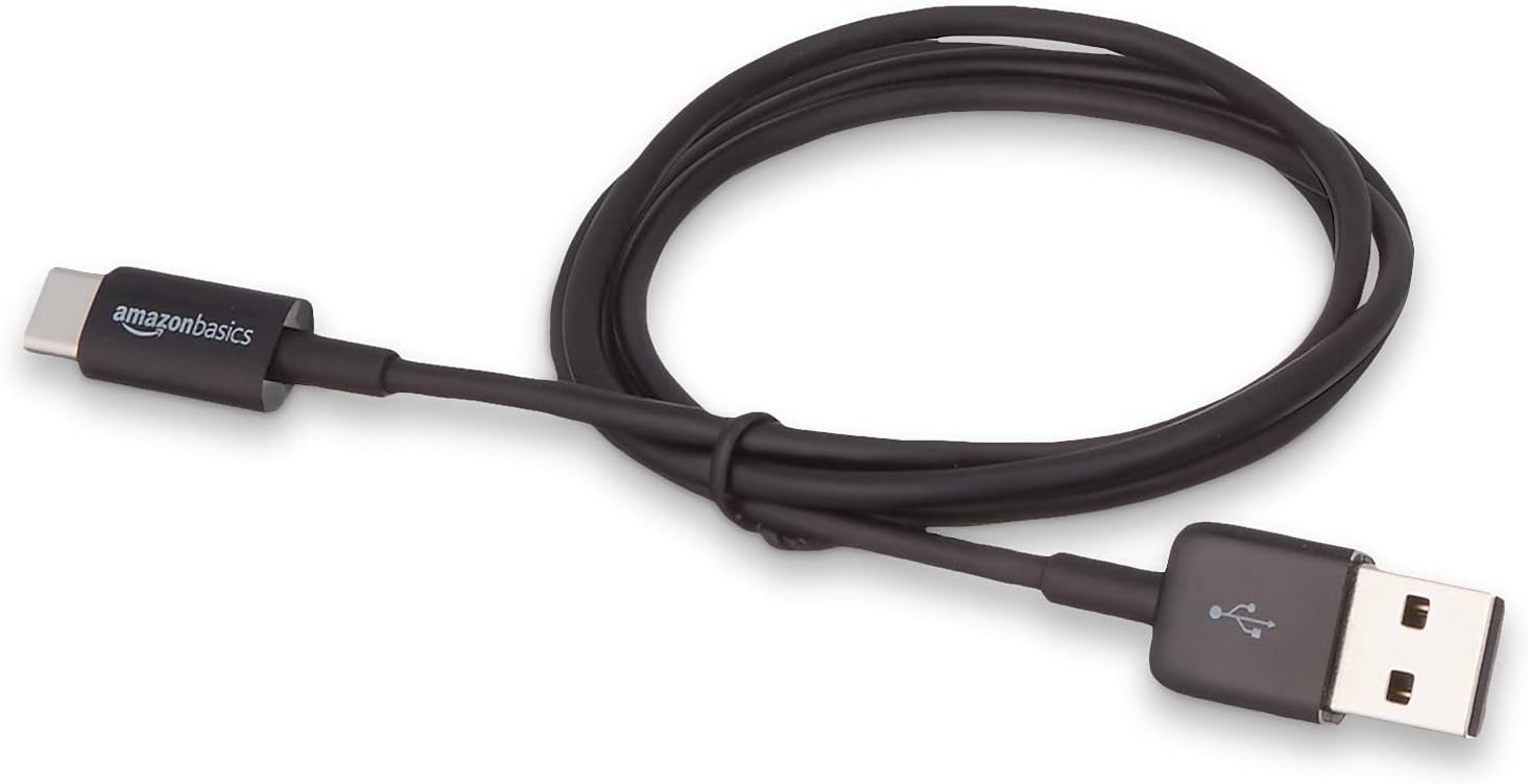 Кабел за бързо зареждане Amazon Basics USB C към USB-A 2.0, скорост 480 Mbps, USB-IF сертифициран за Apple iPhone 16/15, iPad, Samsung Galaxy, таблети, лаптопи, 5 броя - 0.9 м - черен