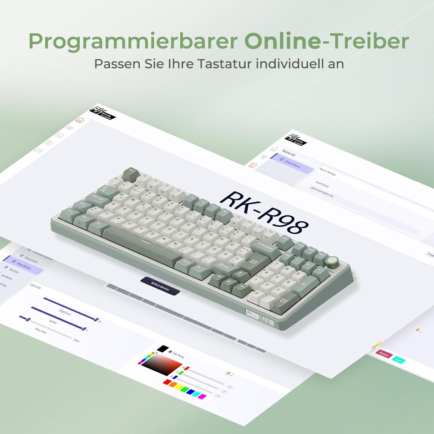 • 98% оформление с пълноценна цифрова клавиатура: Механичната клавиатура RK R98 предлага перфектния баланс между пестене на място и функционалност. Компактното 98% оформление запазва пълната цифрова клавиатура (необходима за въвеждане на данни и сметки), като същевременно спестява ценно място на бюрото. Идеална за офис работа, игри или програмиране.