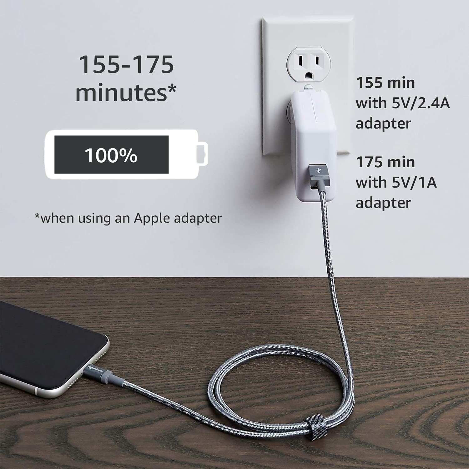 Кабелът AmazonBasics е снабден със сертифициран Apple MFi чип с подобрен чипсет за висока производителност и съвместимост. Този USB A кабел за зареждане използва оригиналния C89 порт и интелигентен чип на Apple и осигурява светкавично бърз трансфер на данни, лесна синхронизация и бързо зареждане (поддържа максимален ток на зареждане от 2,4 A). Той е с подсилена плетена найлонова конструкция, защитно покрити краища на конекторите и кабели с широк диаметър за намалено съпротивление на кабела и оптимално зареждане.