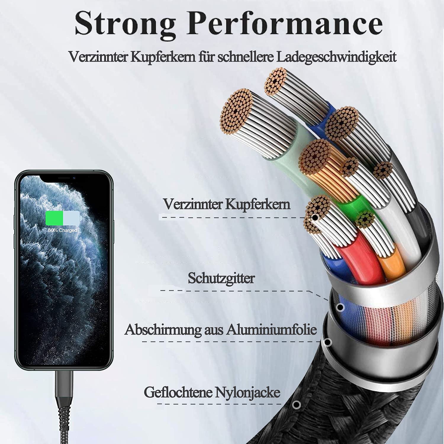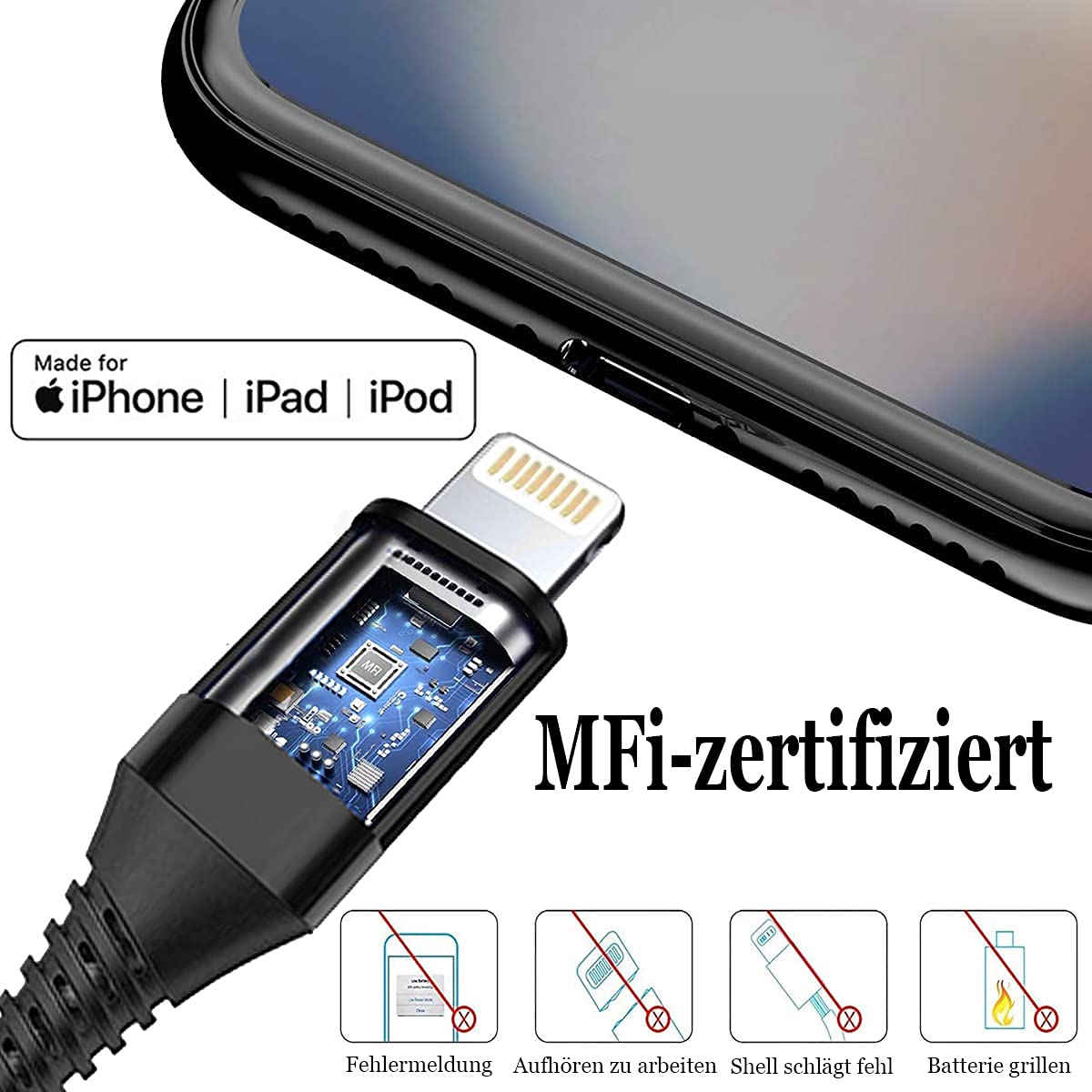 Кабел за зареждане на iPhone, Lightning кабел [2 броя, 2 м + 1 м] Кабел за бързо зареждане на iPhone, сертифициран от MFi, найлонов USB кабел за бързо зареждане за iPhone 11 12 13 14 Pro Max XS Max XR X 8 7 6 6s Plus