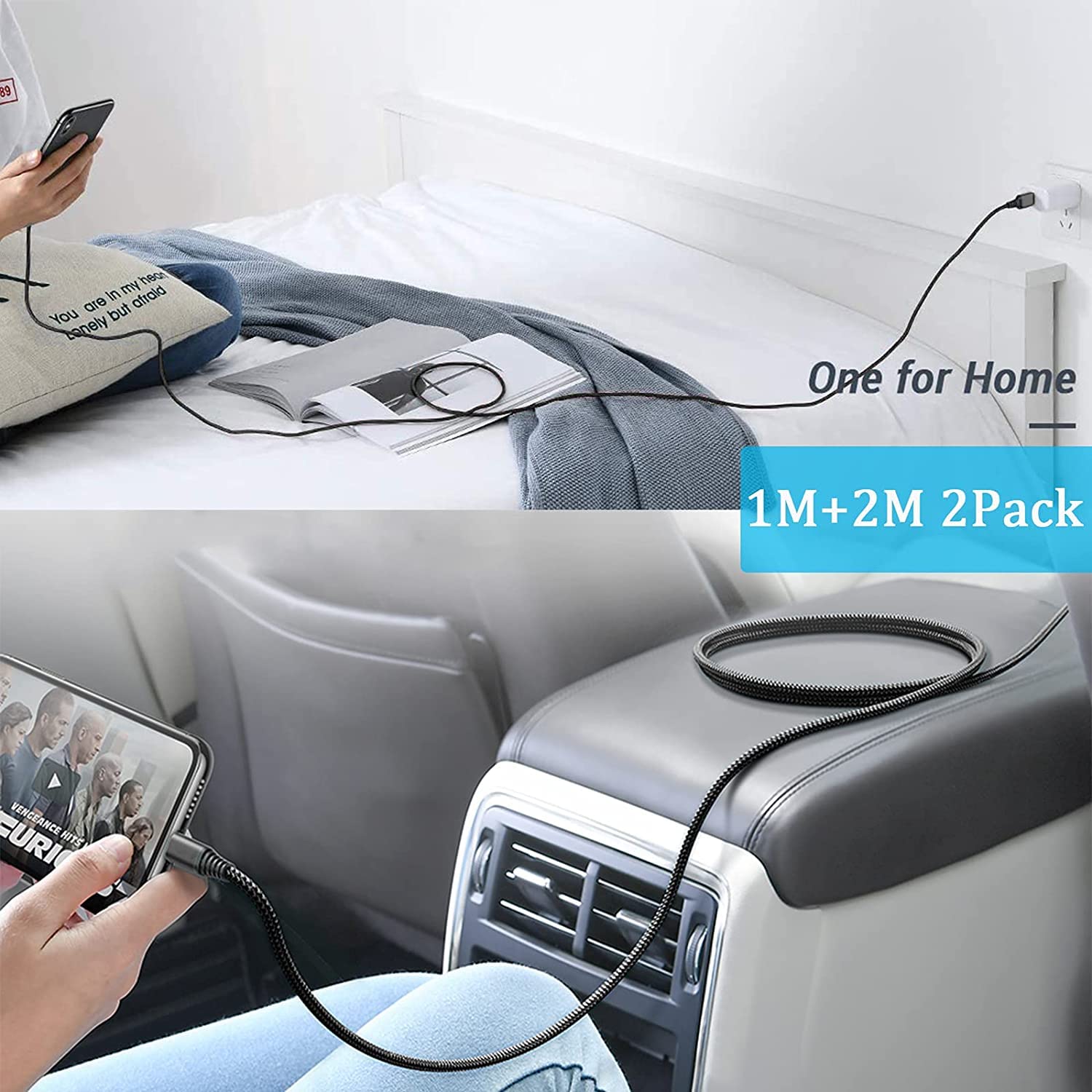 • 【Перфектна различна дължина】С дължината на кабела за iPhone от 2 м, можете да лежите на дивана или дивана, докато зареждате, и да използвате устройствата си едновременно. А зарядното за iPhone от 1 м можете да го използвате в стаята, офиса и дори на задната седалка на колата си. Удобно за носене, подходящо за всеки повод и за различни ежедневни нужди от връзка.