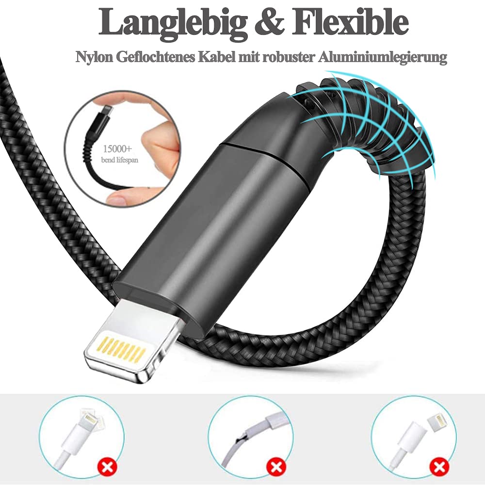 • 【Висококачествен найлонов оплетен кабел】Този кабел за зареждане Lightning е изработен от найлонов материал, за да се избегнат заплитания и повреди. Подобрените 3D алуминиеви конектори и ексклузивната технология за лазерно заваряване гарантират, че металните части няма да се напукат и не могат да се разхлабят. Той може да издържи на над 15 000 вмъквания и огъвания.