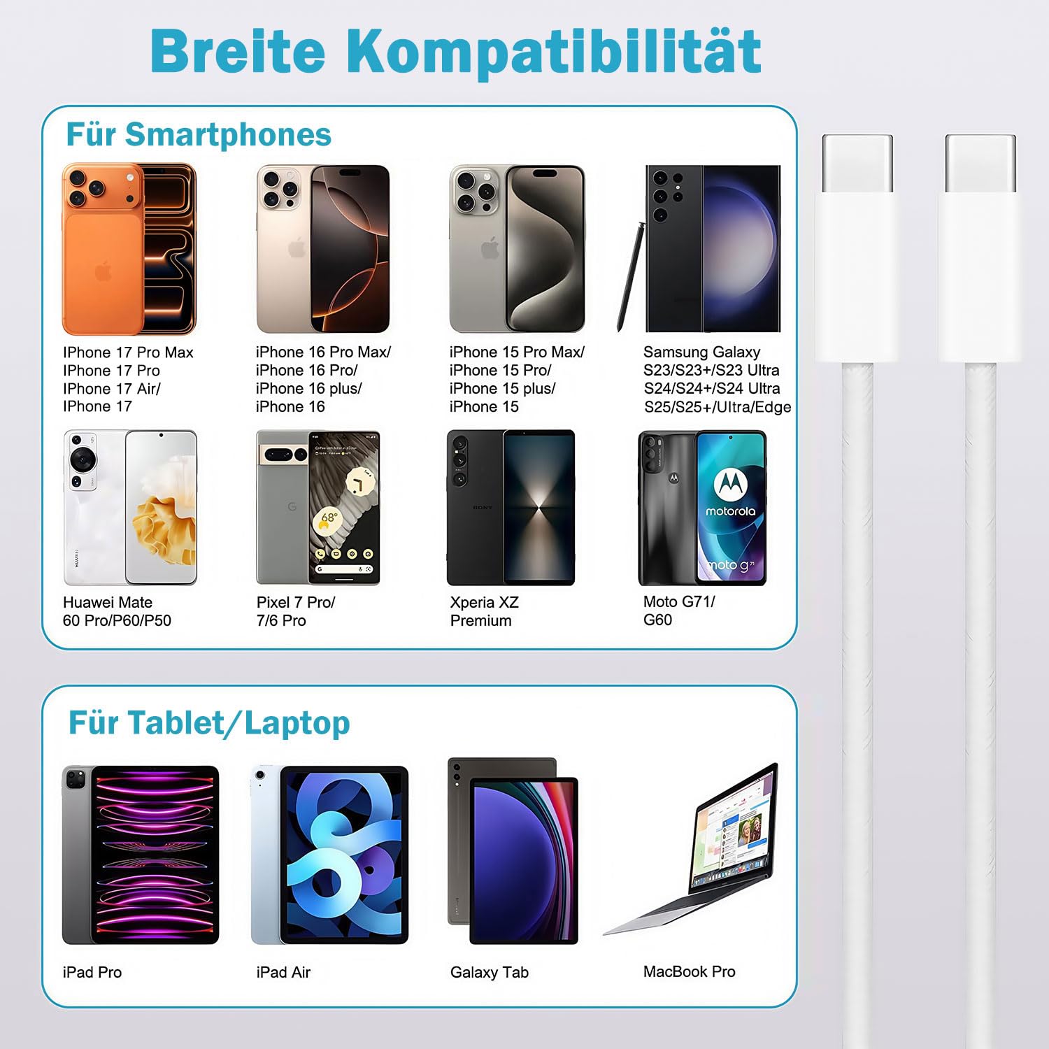 This 3.3ft USB C to USB-C charging cable has a built-in efficient charging chip that supports fast charging with the PD protocol, thus charging your devices quickly.