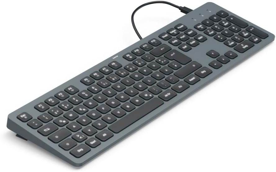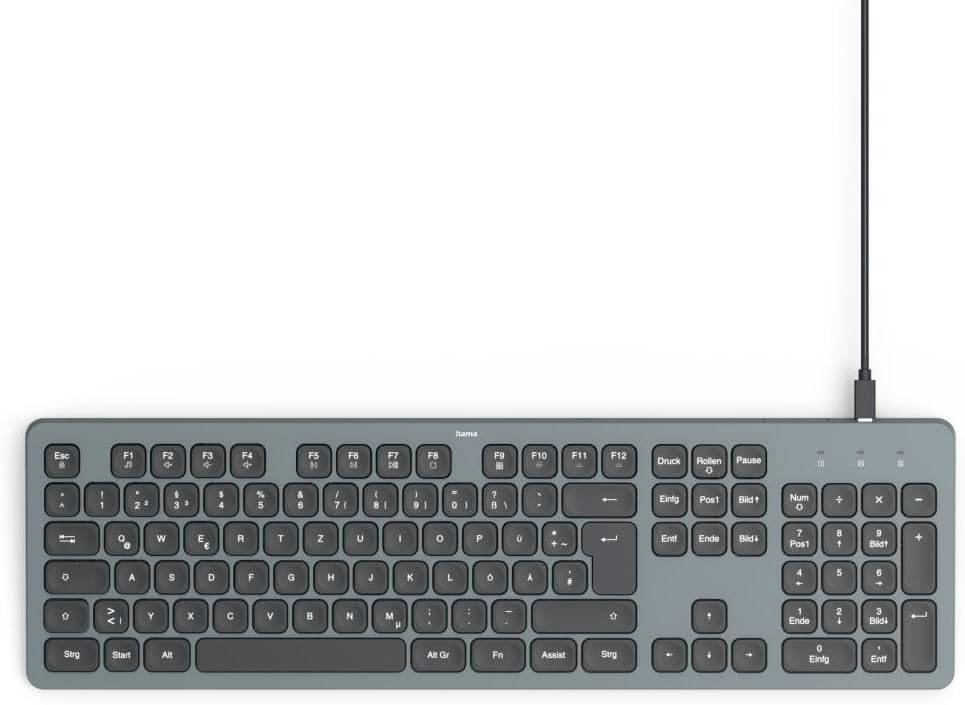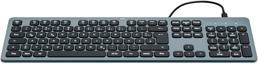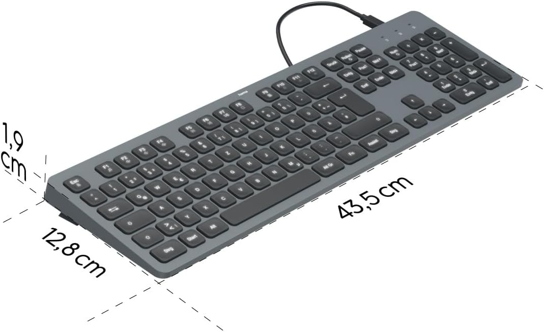 Кабелна клавиатура Hama CK-400 (USB клавиатура с подсветка, димируема, ергономично усещане за писане, ножични клавиши, нисък шум, подвижен кабел, мултимедийни клавиши, немска QWERTZ подредба) Черна