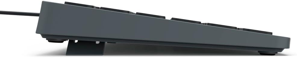 • Кабелна клавиатура за ергономично усещане при писане: регулируеми, неплъзгащи се, удобни, тихи клавиши за спокойна работа, вдлъбнати клавиши, здрав ножичен механизъм, идеален дори при високи скорости на въвеждане