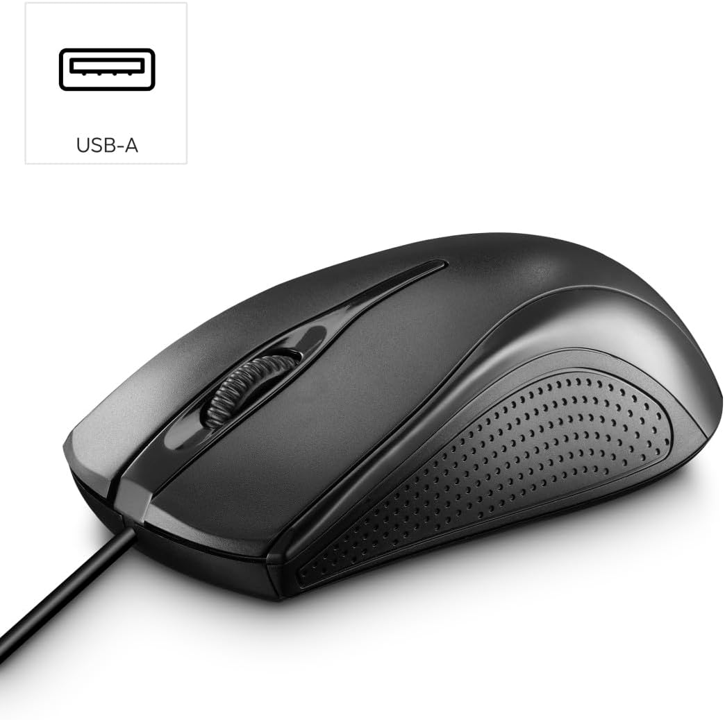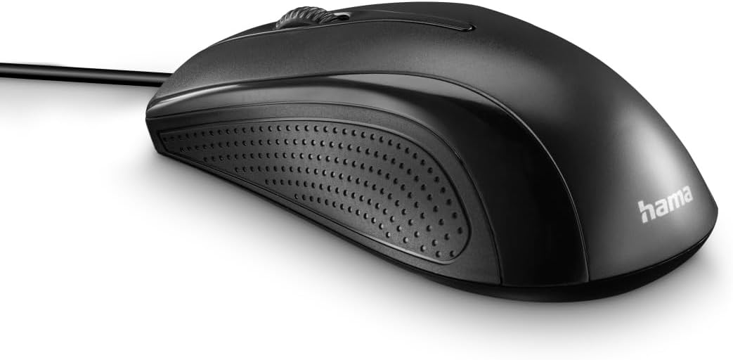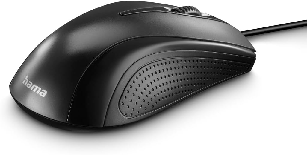 Кабелна компютърна мишка Hama с 3 бутона за компютър, лаптоп или преносим компютър, подходяща за десничари и левичари, 1000 DPI, операционни системи: Windows 11/10/8/7/Vista/XP, MAC OS 10.10 или по-нова версия
