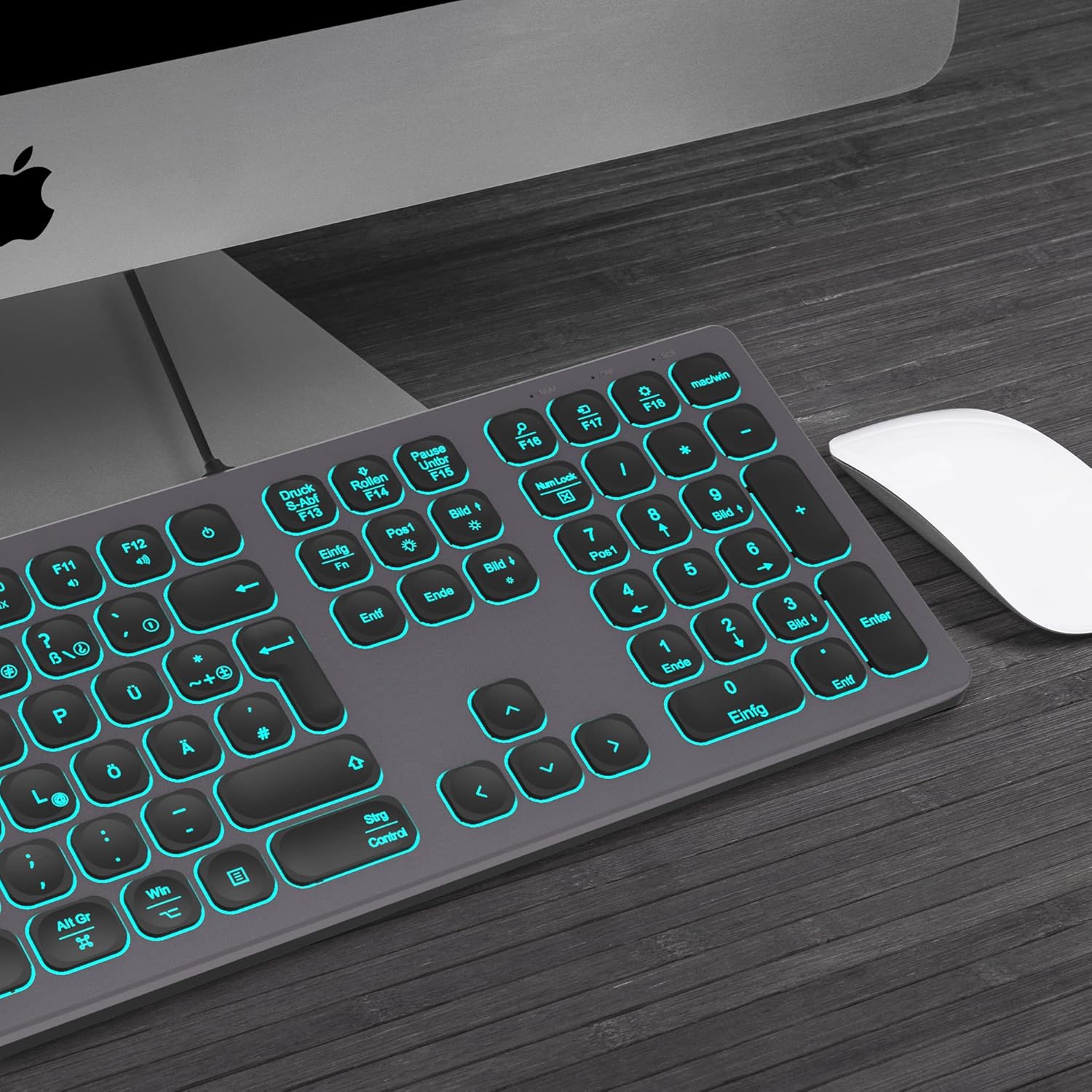 Кабелна USB клавиатура с тънък алуминиев корпус с цифрова клавиатура, RGB подсветка, съвместима с iMac (2016 и 2017, Pro) и PC (космическо сиво)