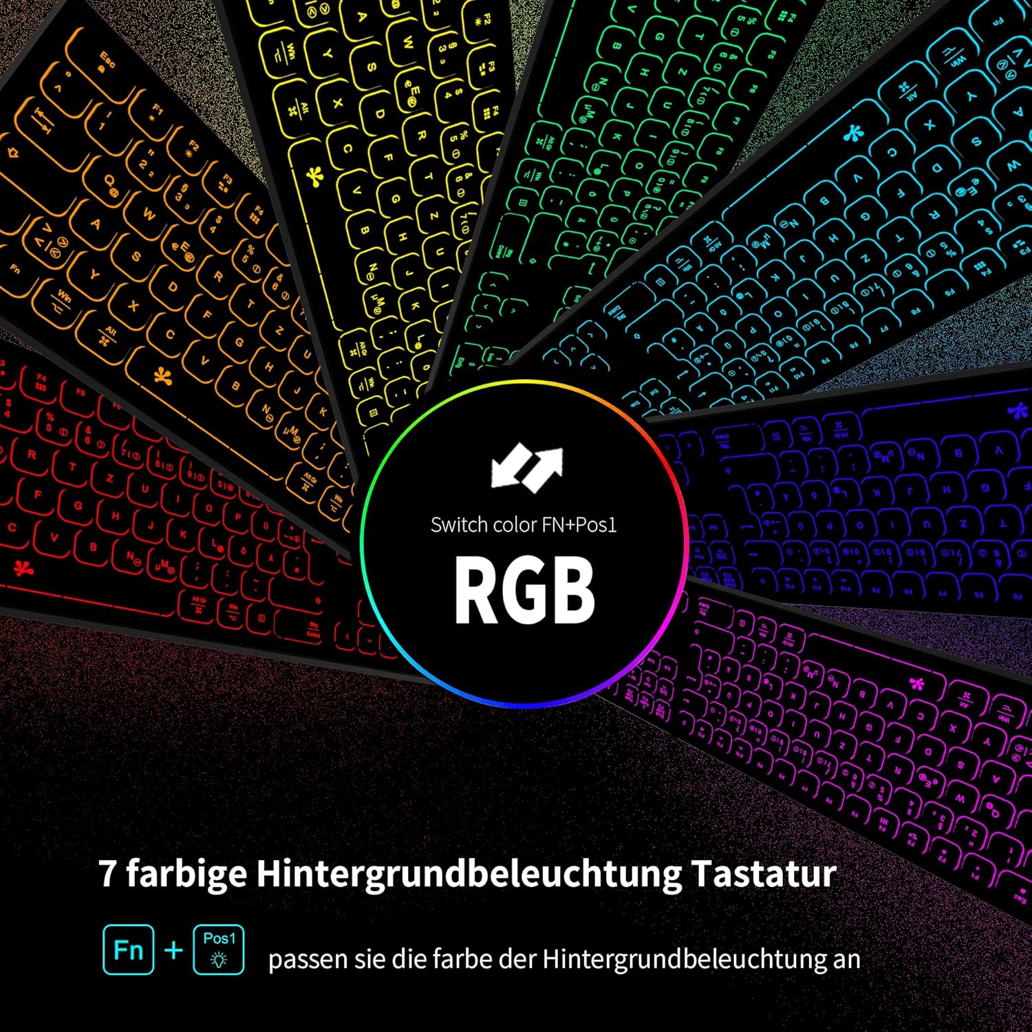 • Стабилна Bluetooth връзка: Директна Bluetooth връзка, без адаптер. Лесно свързване с вашите устройства. Можете лесно да превключвате към до три различни устройства с едно щракване. (Можете също така да свържете устройството с включения кабел за зареждане. Моля, уверете се, че превключвателят на клавиатурата е включен, преди да го свържете с кабел.)