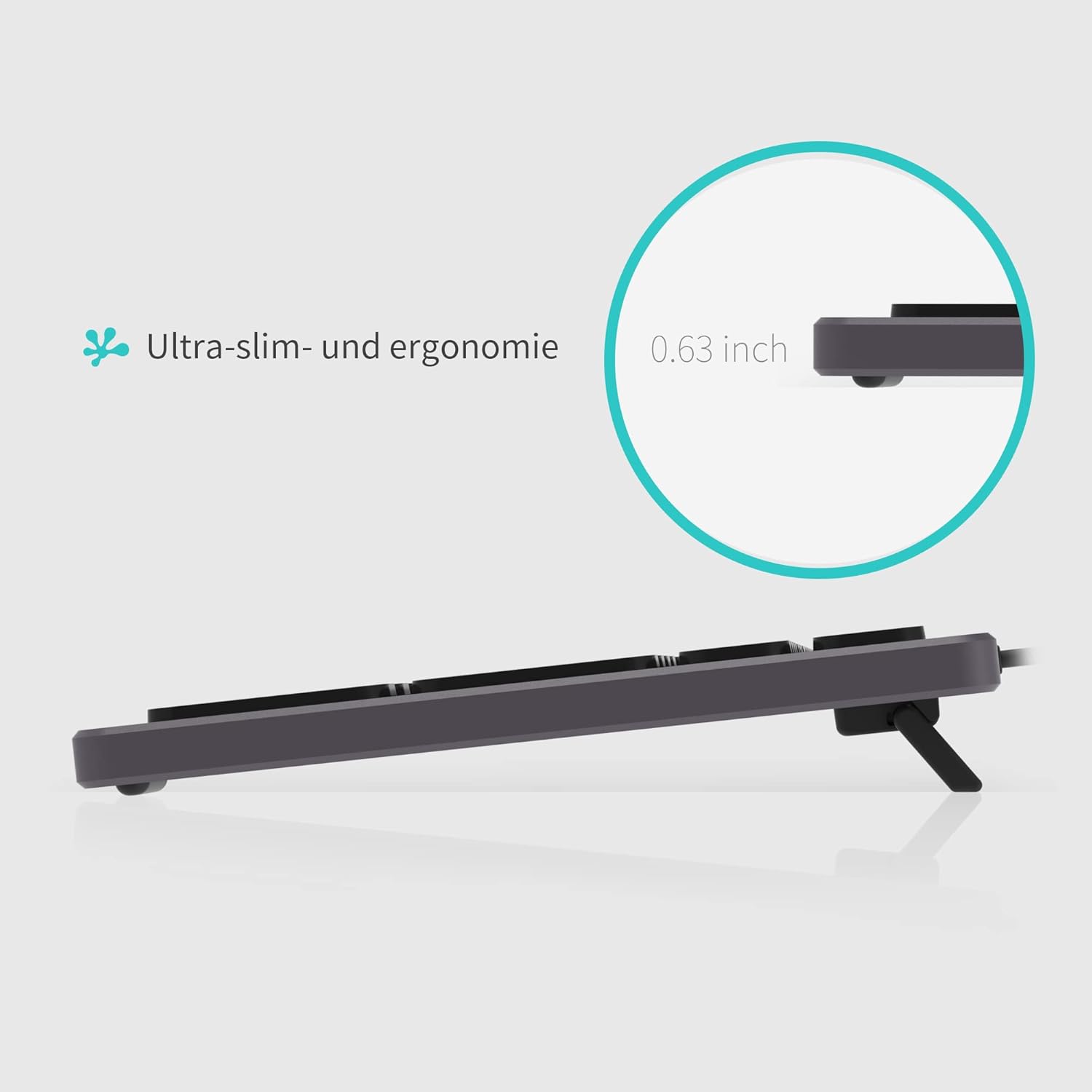 • УЛТРА ТЪНКА И ТИХА КЛАВИАТУРА С плоски клавиши и висококачествен, безшумен ножичен превключвател, можете да се наслаждавате на удобно и ефективно писане. Опростеният, елегантен и компактен дизайн на клавиатурата с висококачествен алуминиев корпус заема отлично място на бюрото ви.