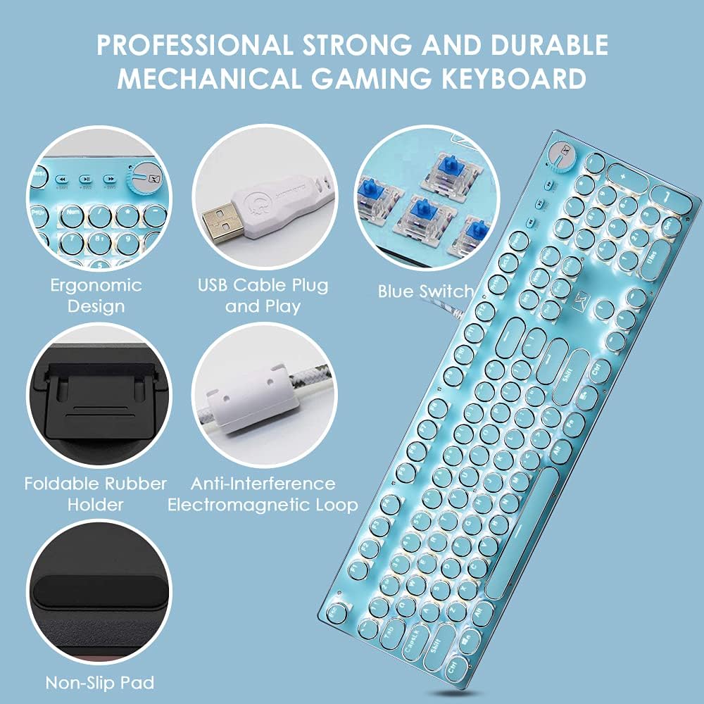 Mechanischer blauer Schalter für ultimative Gaming-Performance. Die mechanischen Tasten bieten einen mittleren Widerstand, einen hörbaren Klick-Sound und eine taktile Rückmeldung.