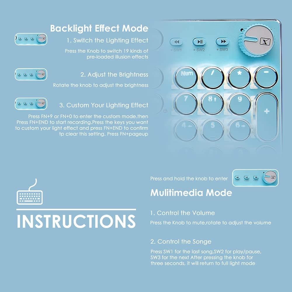 Когато светлината на бутона свети постоянно, бутонът е клавишът за регулиране на подсветката; когато натиснете SW1/SW2/SW3, клавиатурата показва три различни режима на подсветка. Когато светлината на бутона е изключена, бутонът е клавишът за управление на силата на звука: SW1 = предишна песен, SW2 = пауза, SW3 = следваща песен.