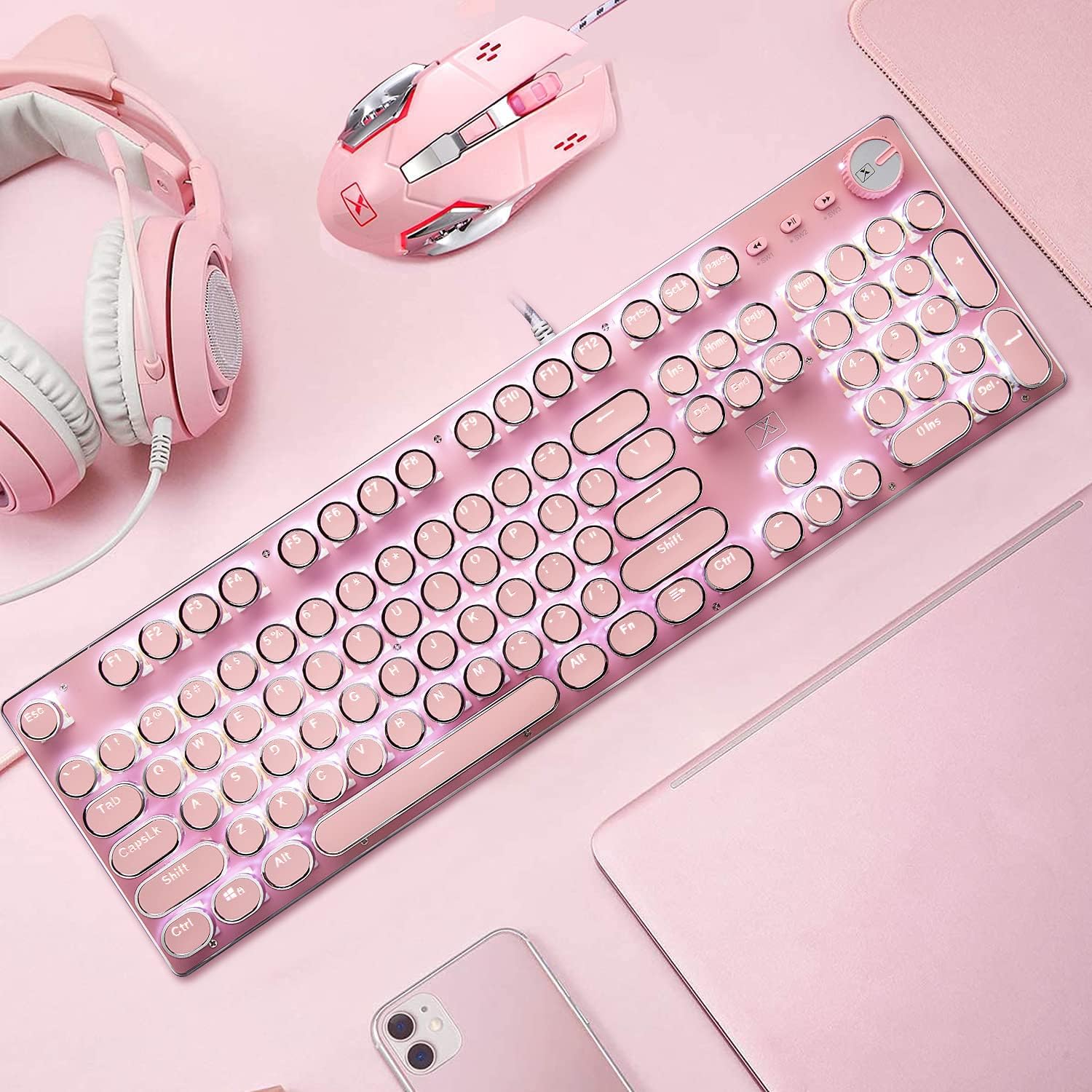 Кръгли галванизирани капачки за клавиши в ретро стил, наподобяващ пишеща машина.