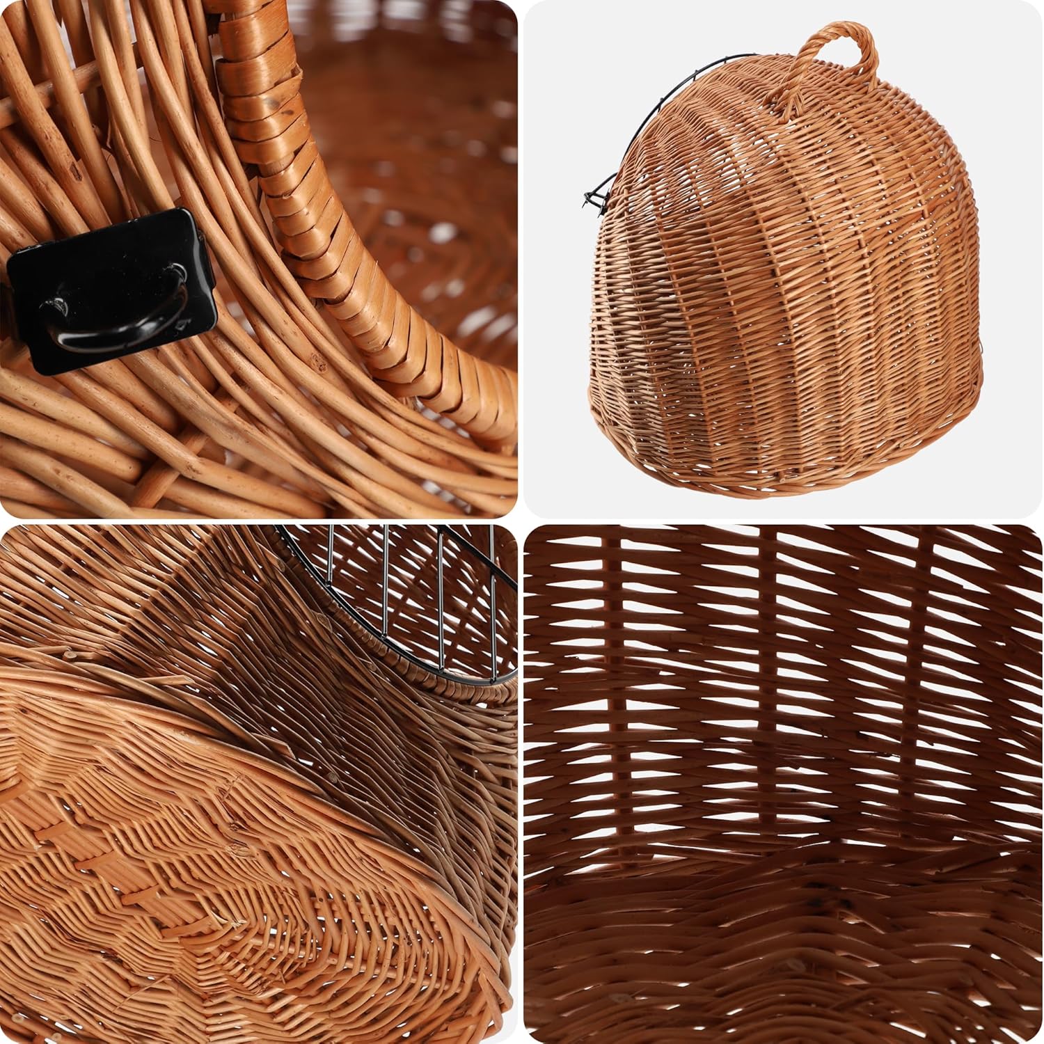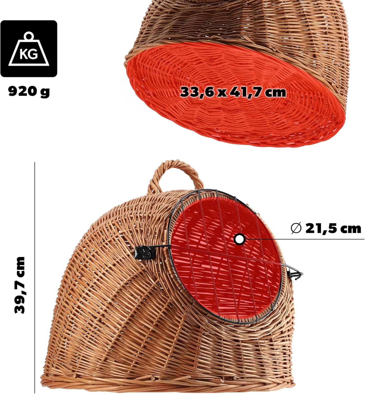 Посещения при ветеринар, пътуване с кола или почивка: във всички тези ситуации безопасният транспорт е важен за нашите четириноги приятели. С нашата транспортна кошница това може да бъде практично и стилно. Естественият кафяв цвят на върбовата пръчка напомня на топка с квадратно дъно. Това ви позволява лесно да поставите кошницата. Плетена здрава дръжка също е предимство.