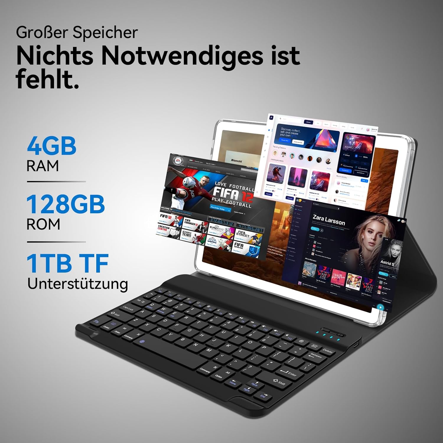 • 【8(4+4)GB RAM + 128GB ROM + 1TB TF】128GB Android таблет за мощна многозадачност, 4GB RAM за леки офис и ежедневни развлекателни задачи, разширяем до 8GB RAM за още повече мощност, ако е необходимо. Поддържа 1TB разширен капацитет за съхранение на TF, спестявайки ви пари от услуги за облачно съхранение. Функцията за разделен екран поддържа едновременно стартиране на две приложения на един екран.