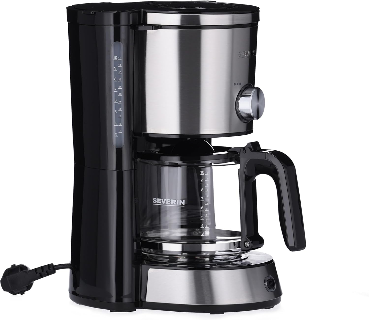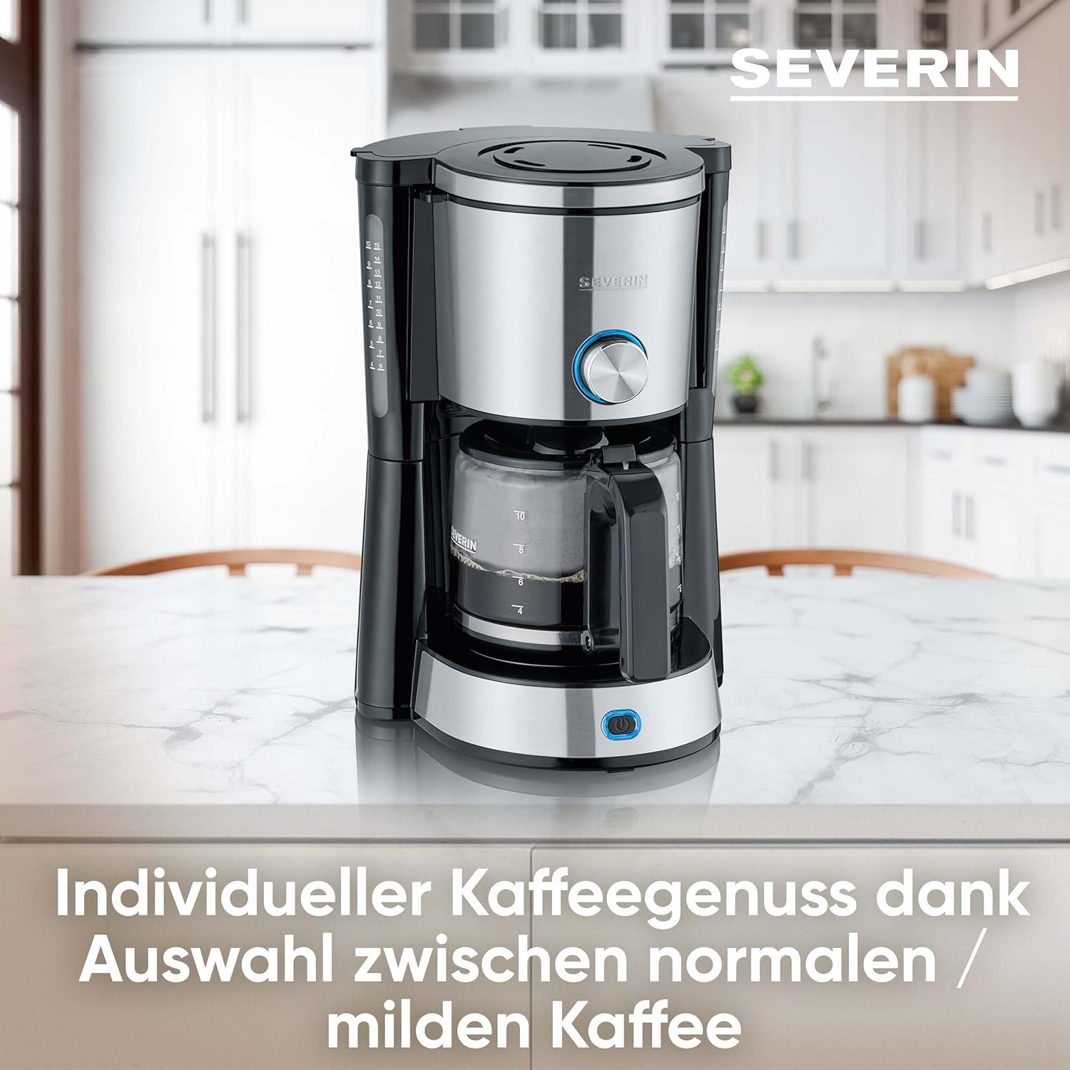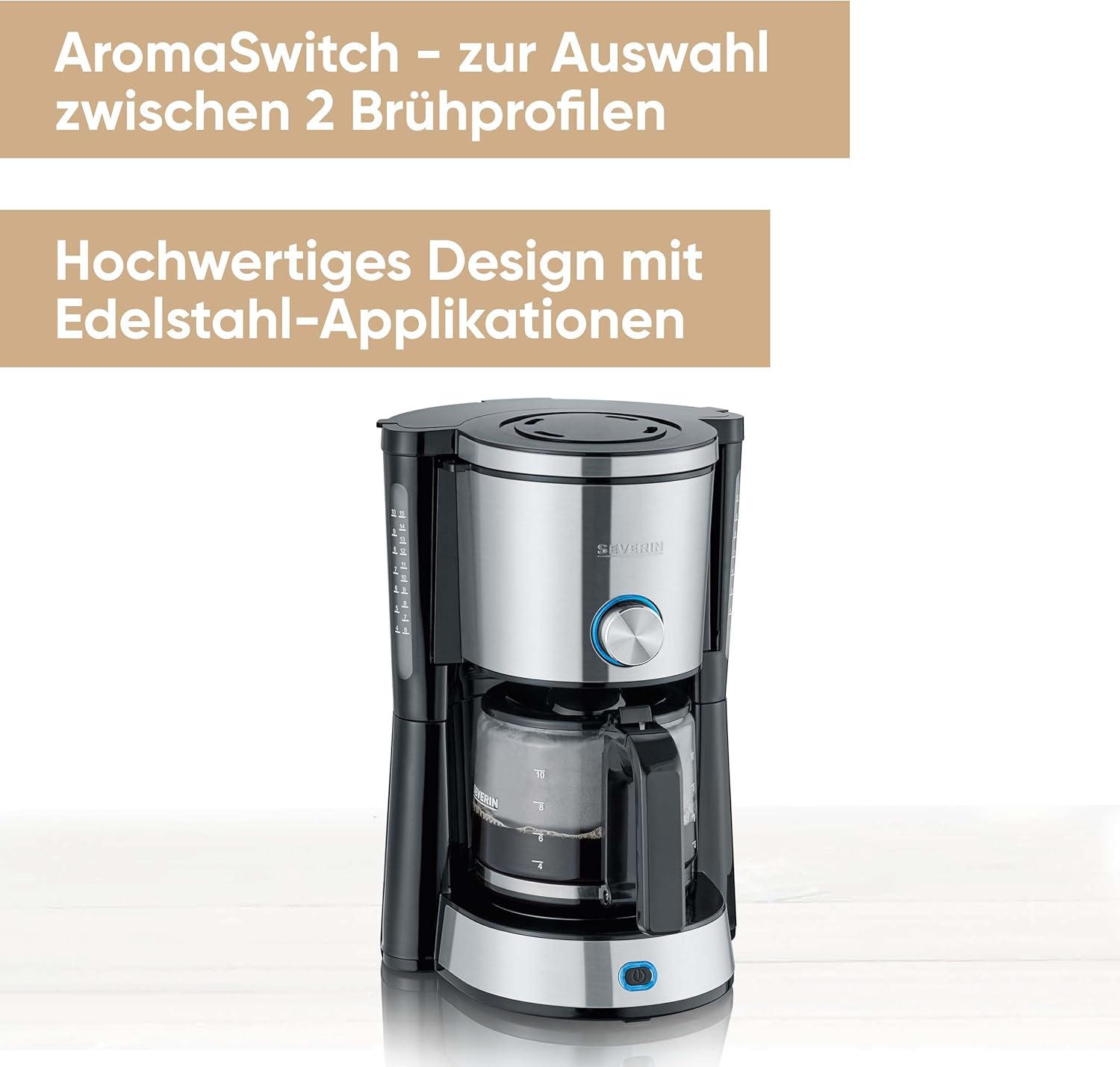 Кафе машина Severin KA 4825 TYPE SWITCH, неръждаема стомана, черна, капацитет: 10 чаши, стъклена кана