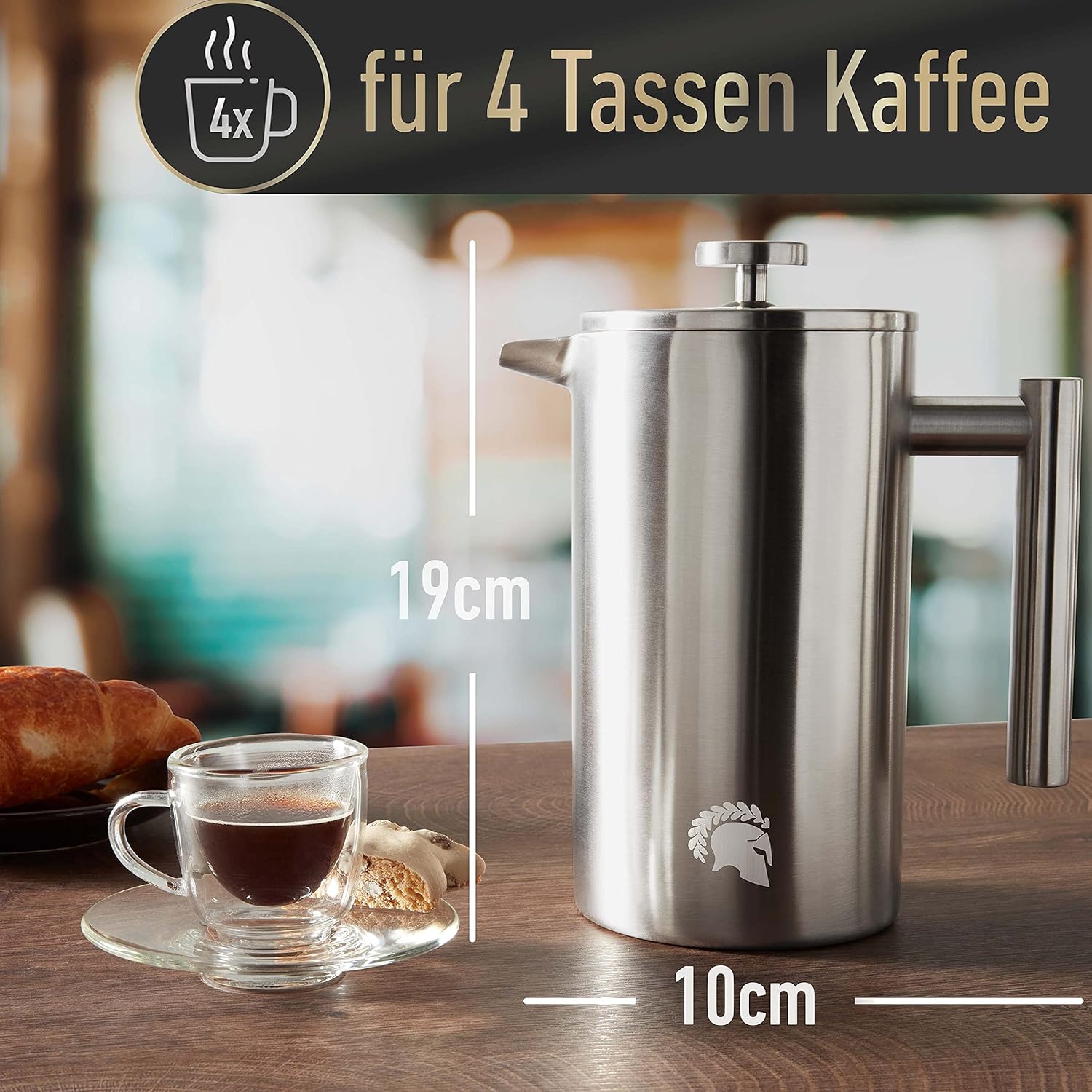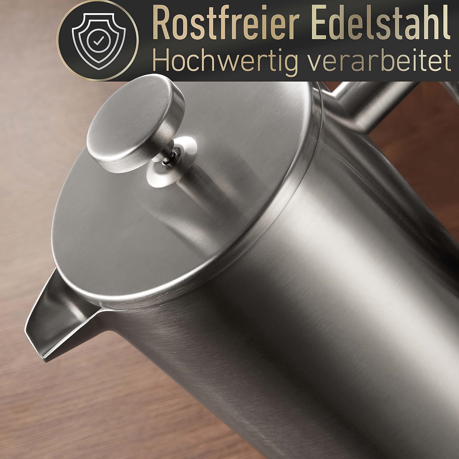 Кафемашина Barista Legends French Press от неръждаема стомана 1 литър – Двустенна термопреса за кафе за постоянно прясно филтрирано кафе – Подходяща и като кафемашина за къмпинг