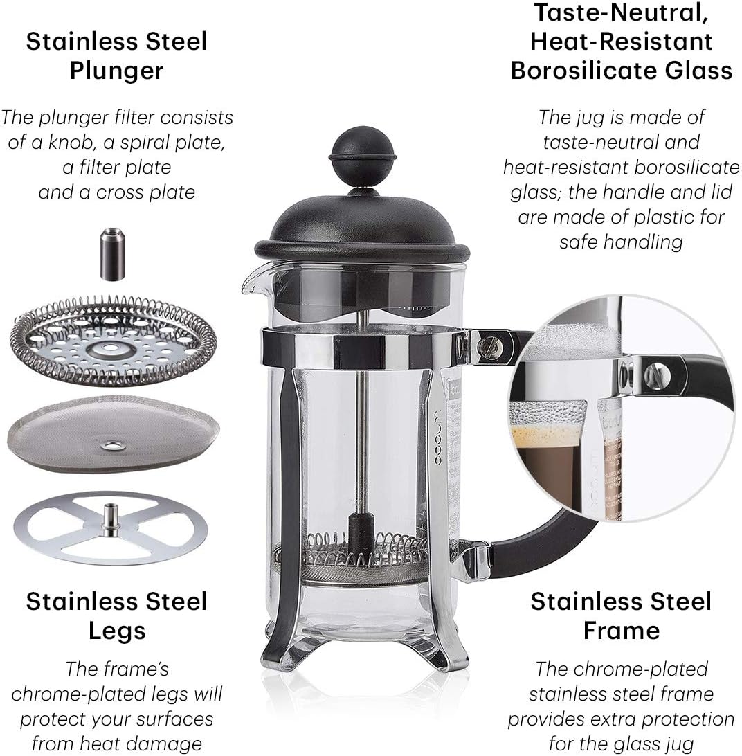 • Наслада от пълноценно кафе - всеки ден: приготвяйте ароматно кафе с класическия метод на френска преса - без капсули или хартиени филтри. Пресовачка от неръждаема стомана с фина цедка осигурява интензивно вкусово изживяване.