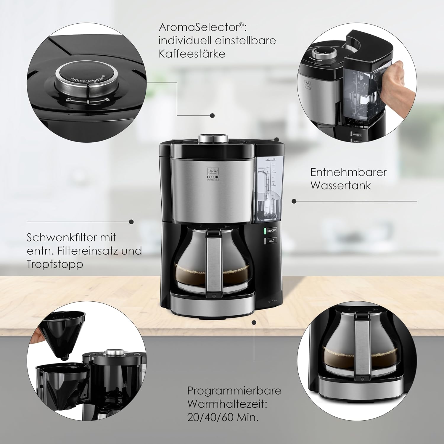 • Споделено удоволствие: благодарение на функцията за затопляне (20,40 или 60 минути). Филтърното кафе остава топло за дълго време.