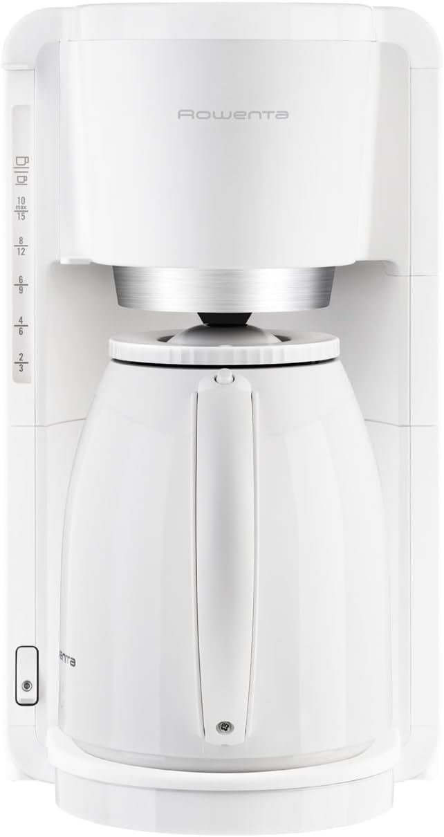Кафемашина Rowenta Adagio Milano CT3801 с филтър и термос, вместимост 1 литър, 8-12 чаши, автоматично изключване, подвижна филтърна вложка, индикатор за нивото на водата, бяла