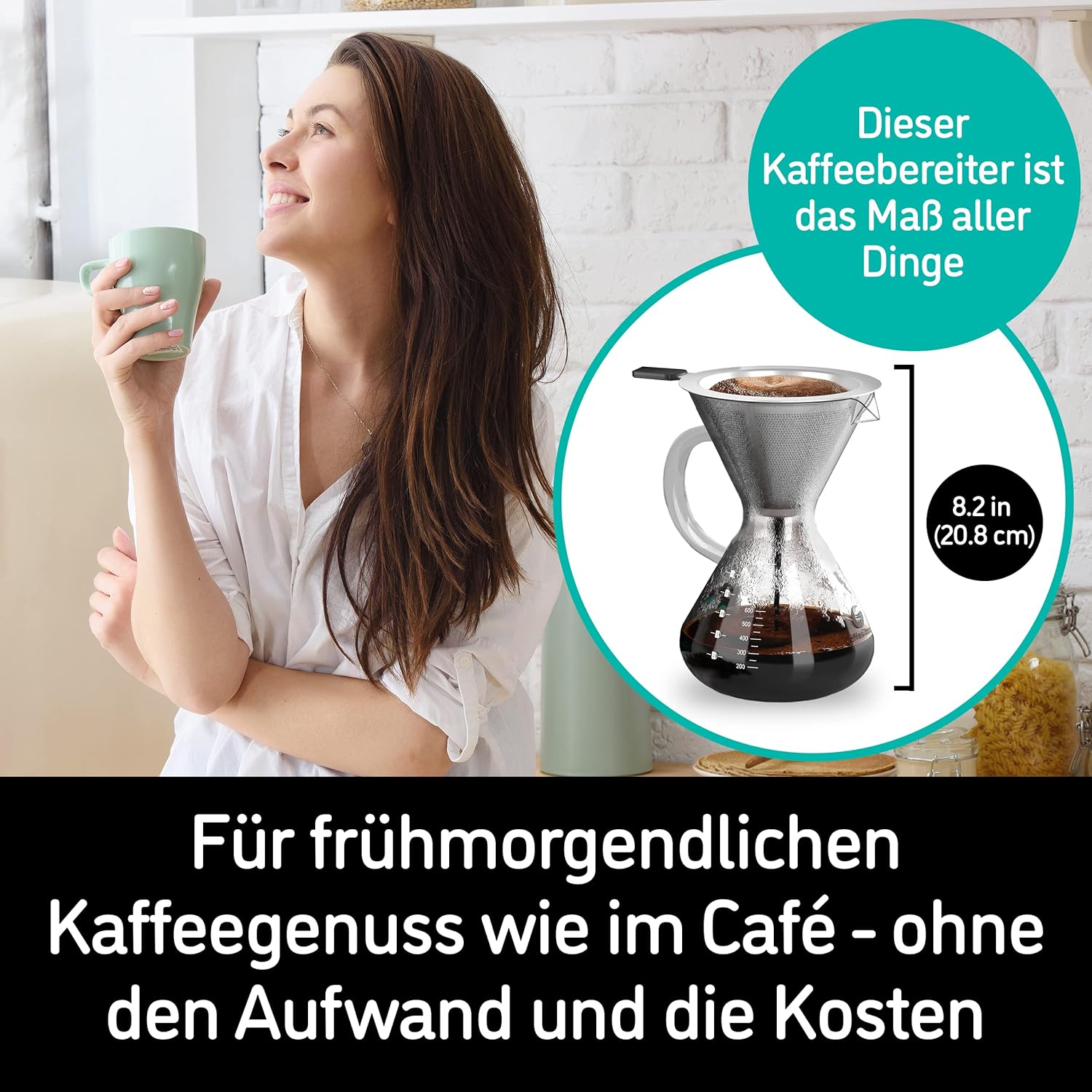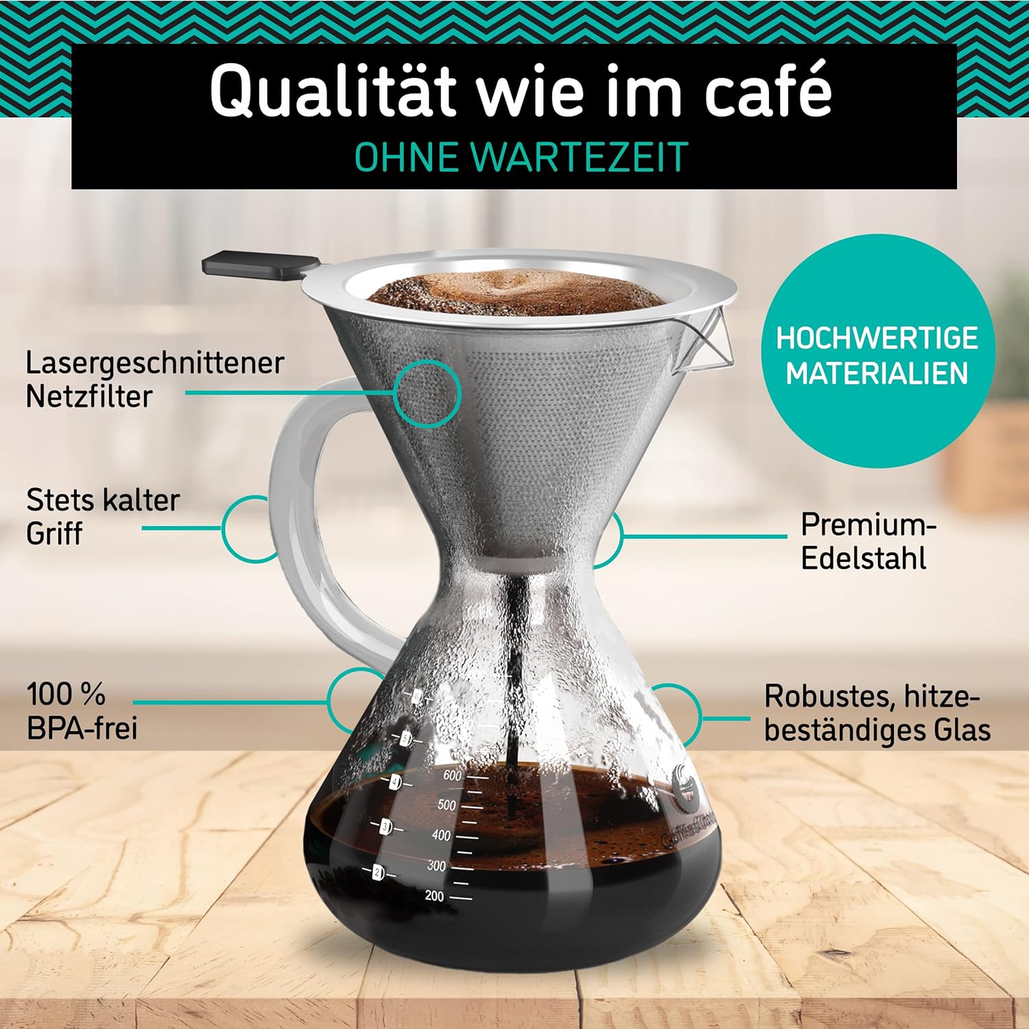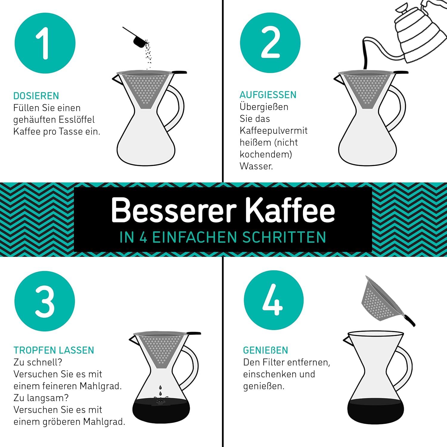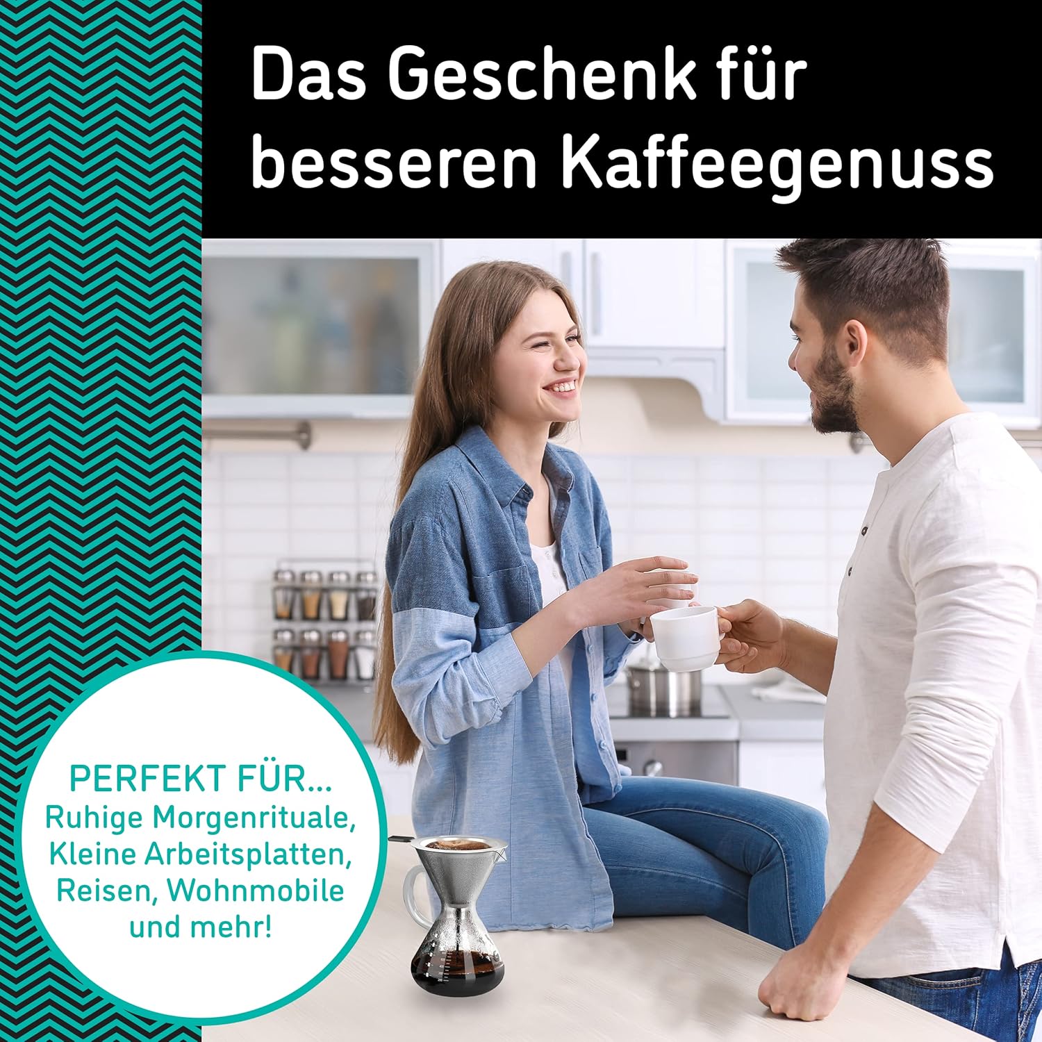 • Повече усмивки на чаша. Баристите са съгласни, че приготвянето на кафе чрез преливане отключва пълния потенциал на кафето. Този комплект за капково кафе го прави лесно. Подгответе вкусовите си рецептори за вкусов празник, който ще ви накара да блеснете.