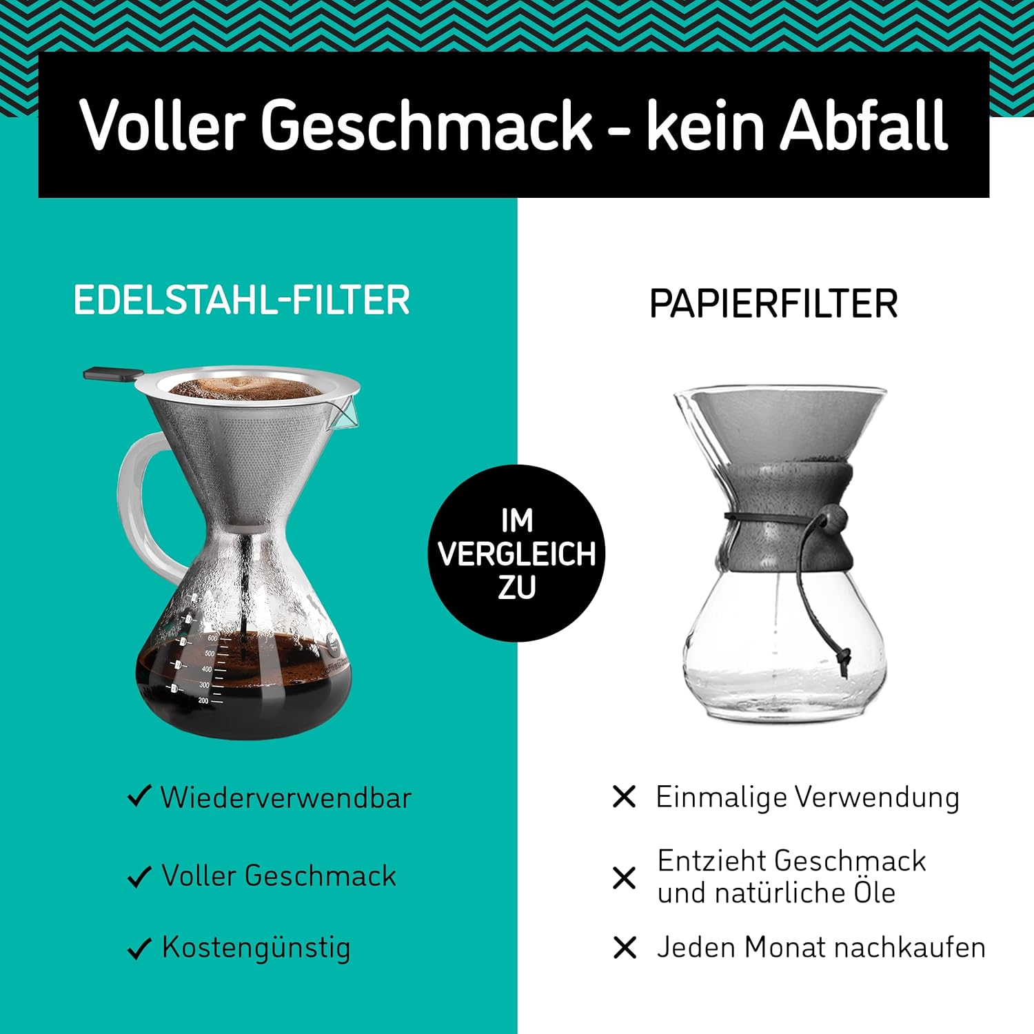 • ЗА МНОГОКРАТНА УПОТРЕБА Включеният филтър от неръждаема стомана осигурява мек, плътен накрайник и запазва естествените масла, които придават на кафето пълния му аромат