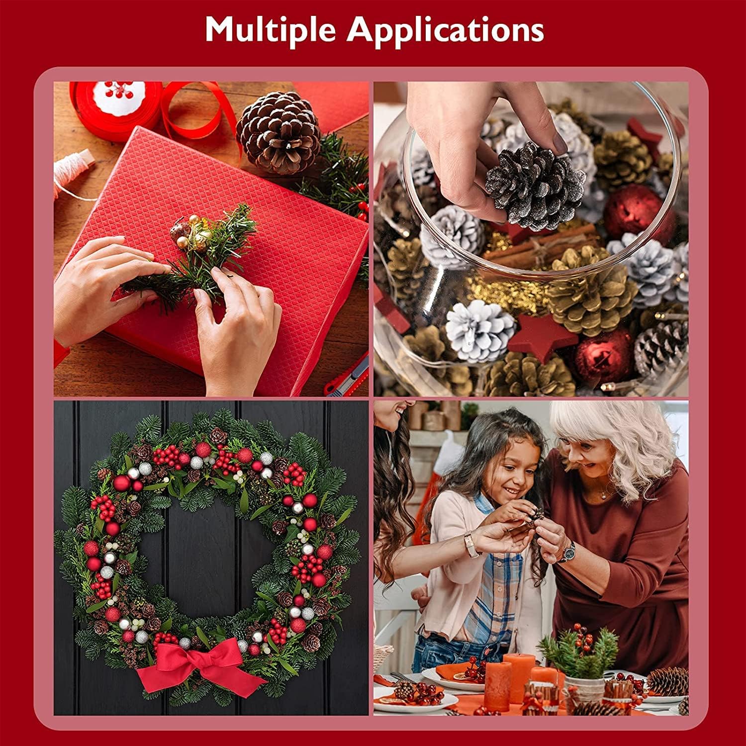 - Червените плодове и боровите клонки са изработени от висококачествена пяна и пластмаса, боровите шишарки са естествени, здрави и екологични.
