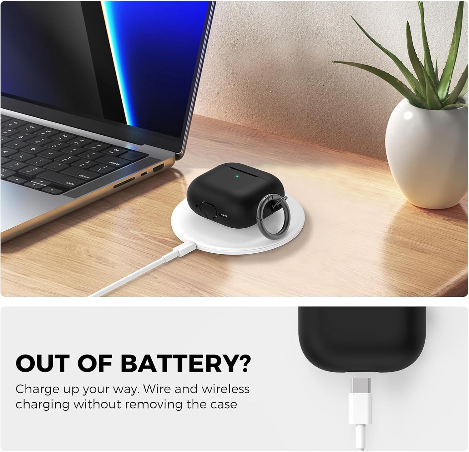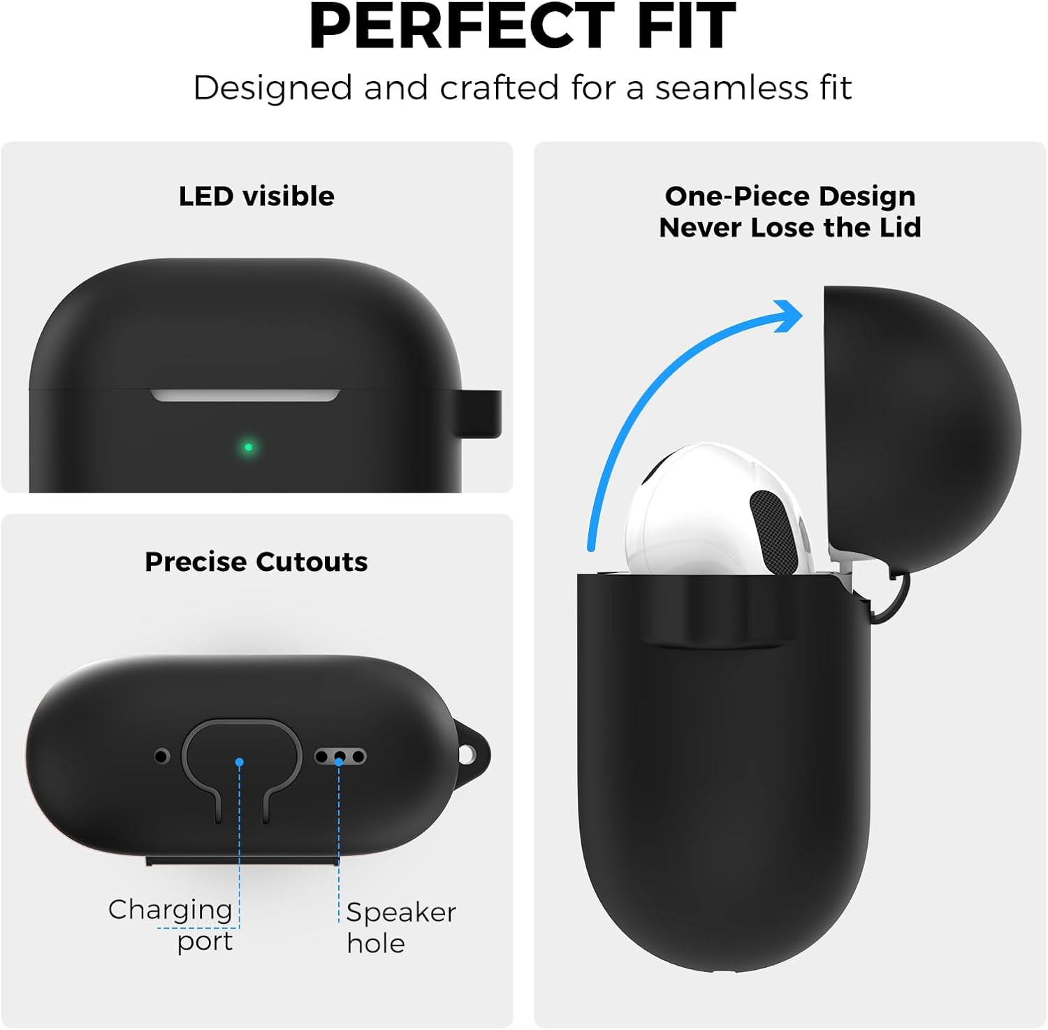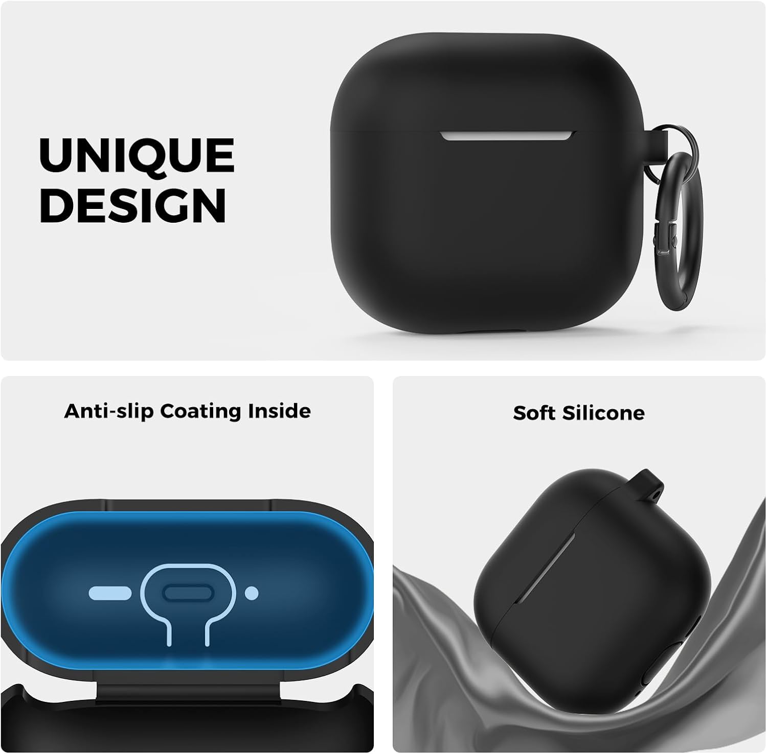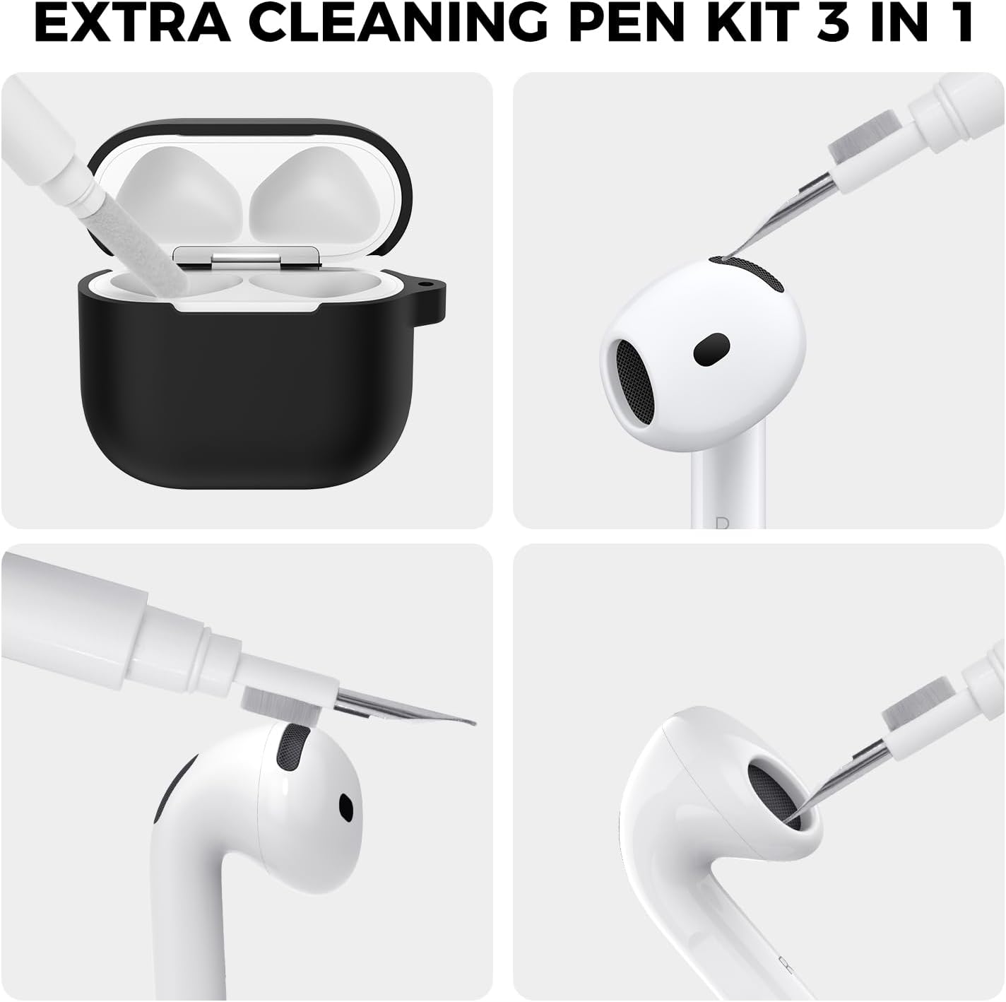 Калъф AhaStyle за AirPods 4 (2024) с почистваща писалка, първокласен силиконов калъф за AirPods 4-то поколение, калъф за цялото тяло на Apple AirPods 4, поддържа зареждане с USB-C и безжично зареждане