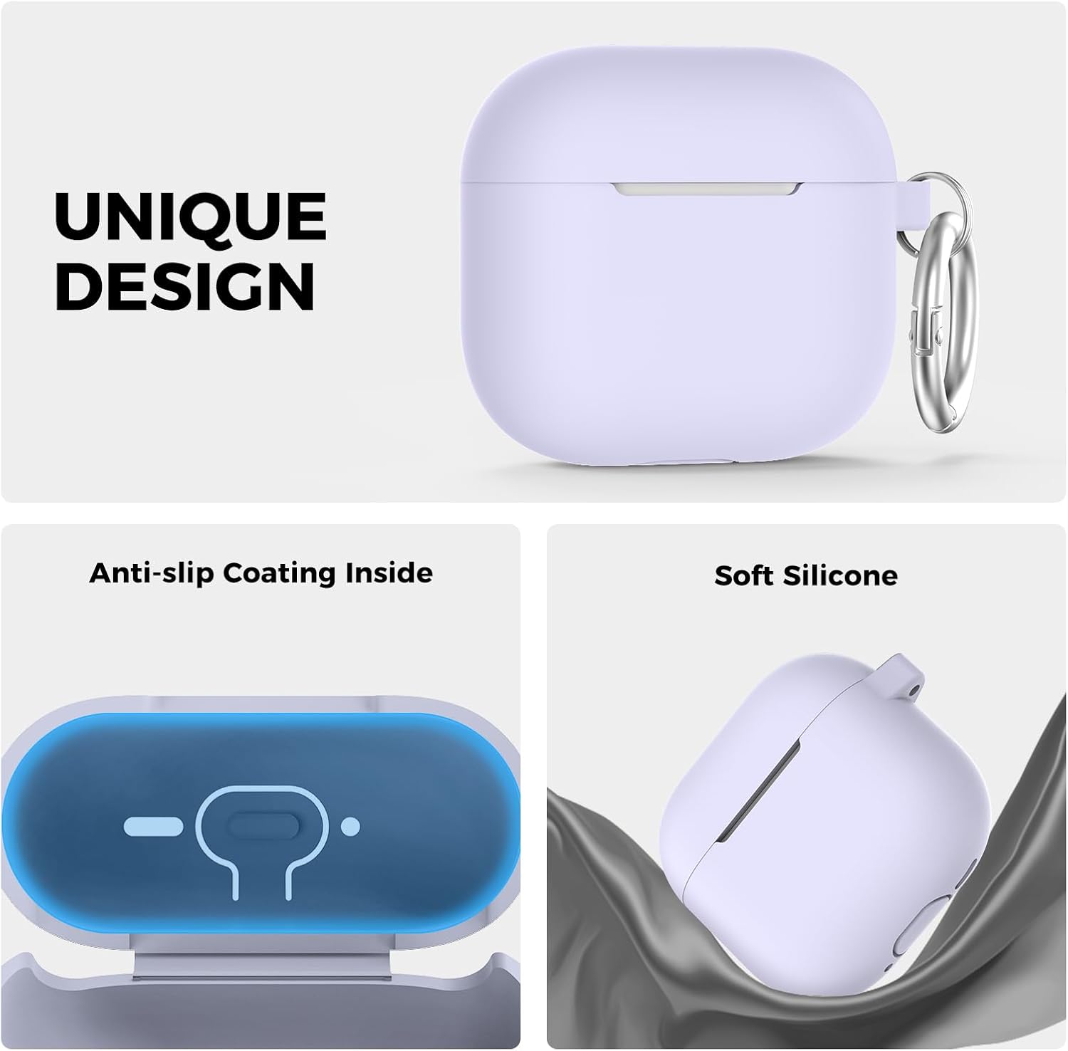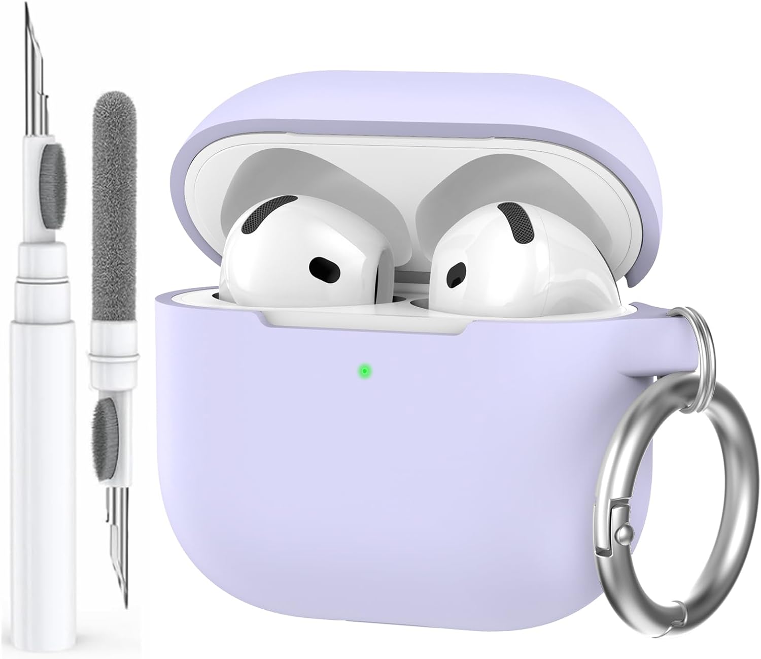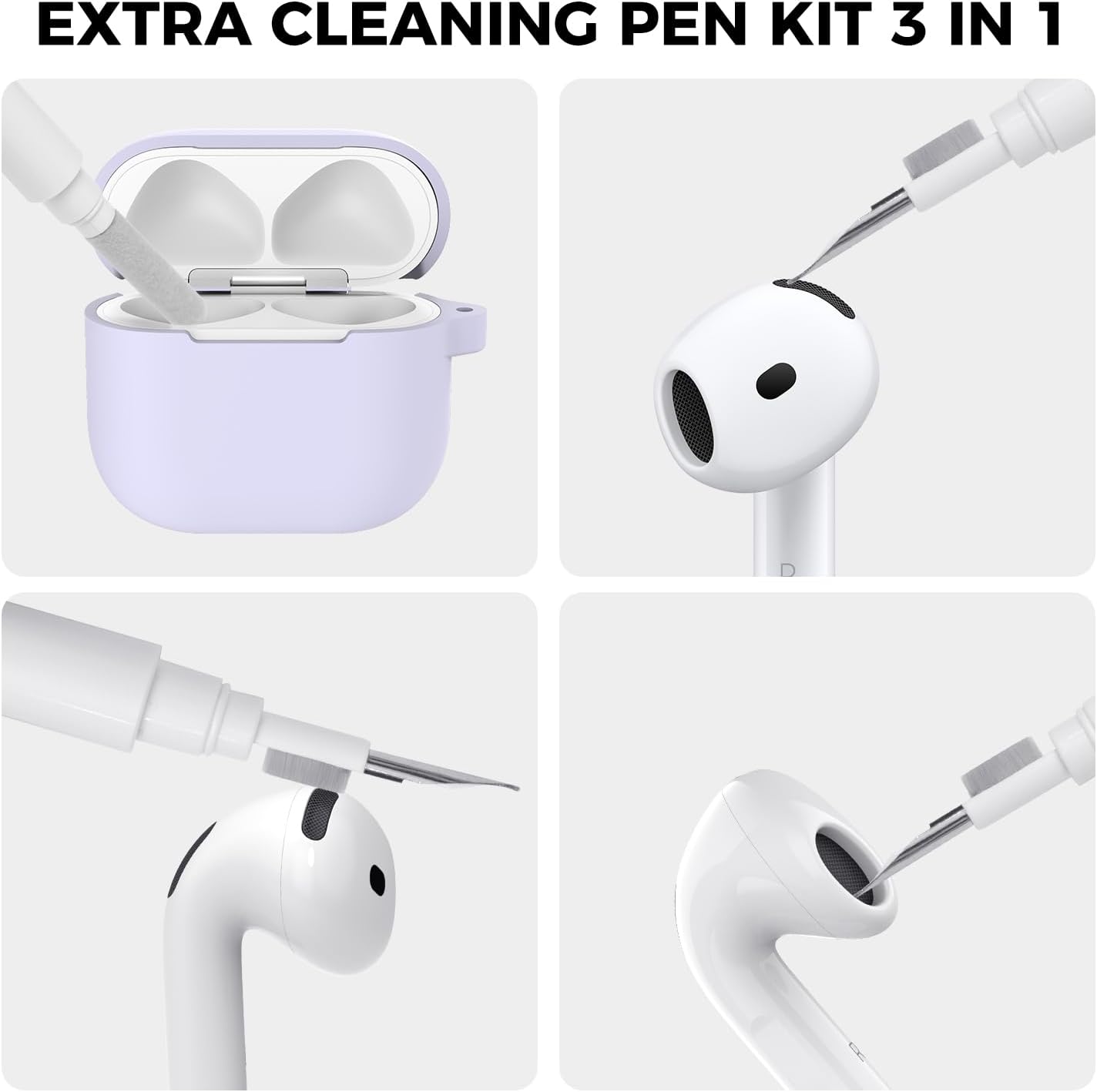 Калъф AhaStyle за AirPods 4 (2024) с почистваща писалка, първокласен силиконов калъф за AirPods 4-то поколение, калъф за цялото тяло на Apple AirPods 4, поддържа зареждане с USB-C и безжично зареждане