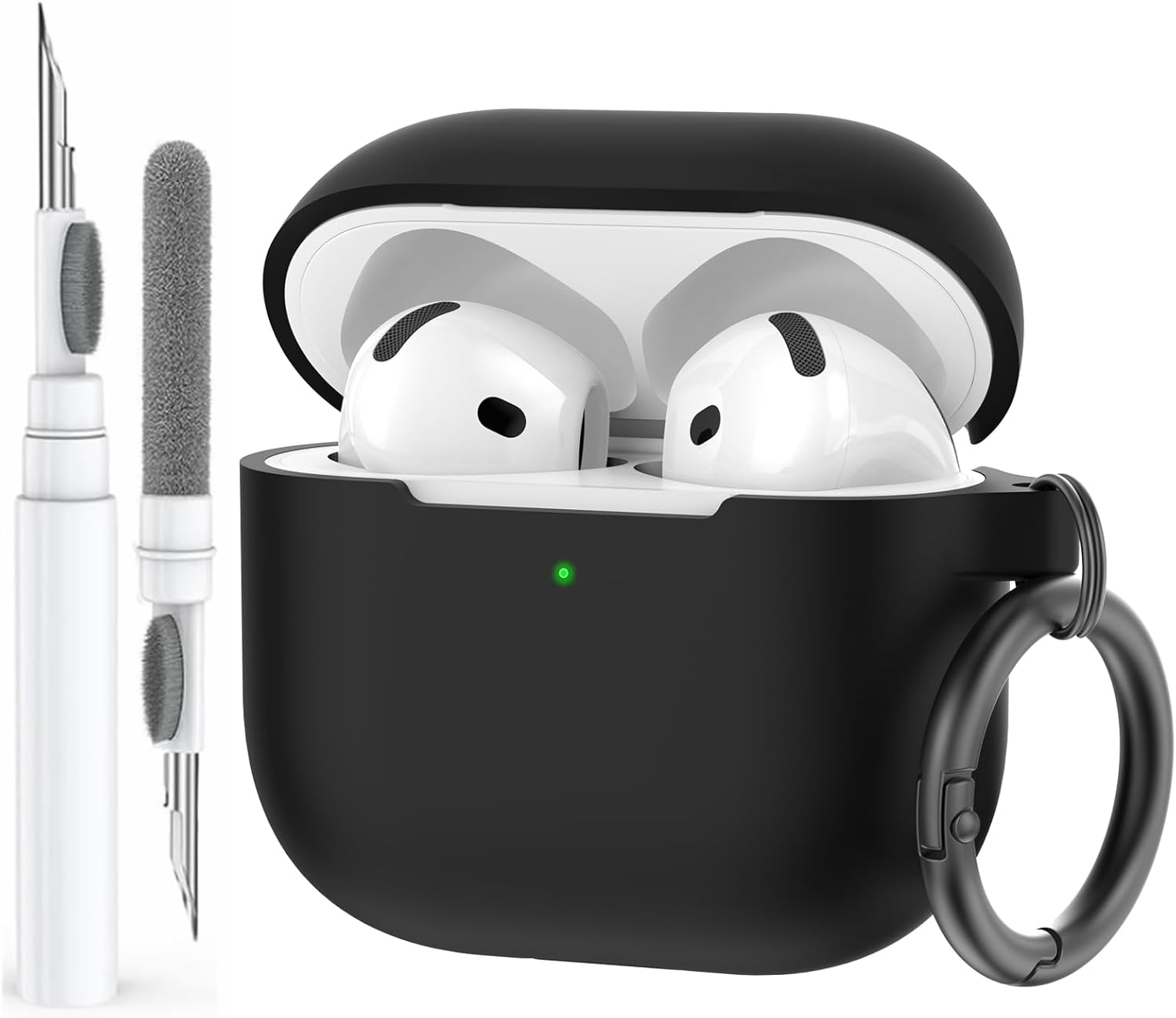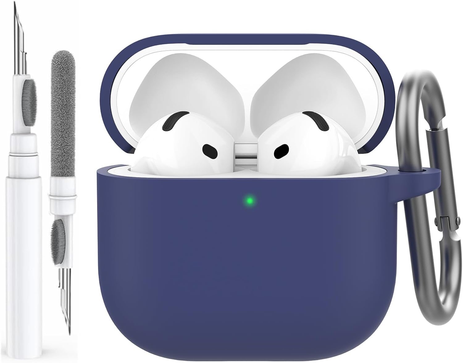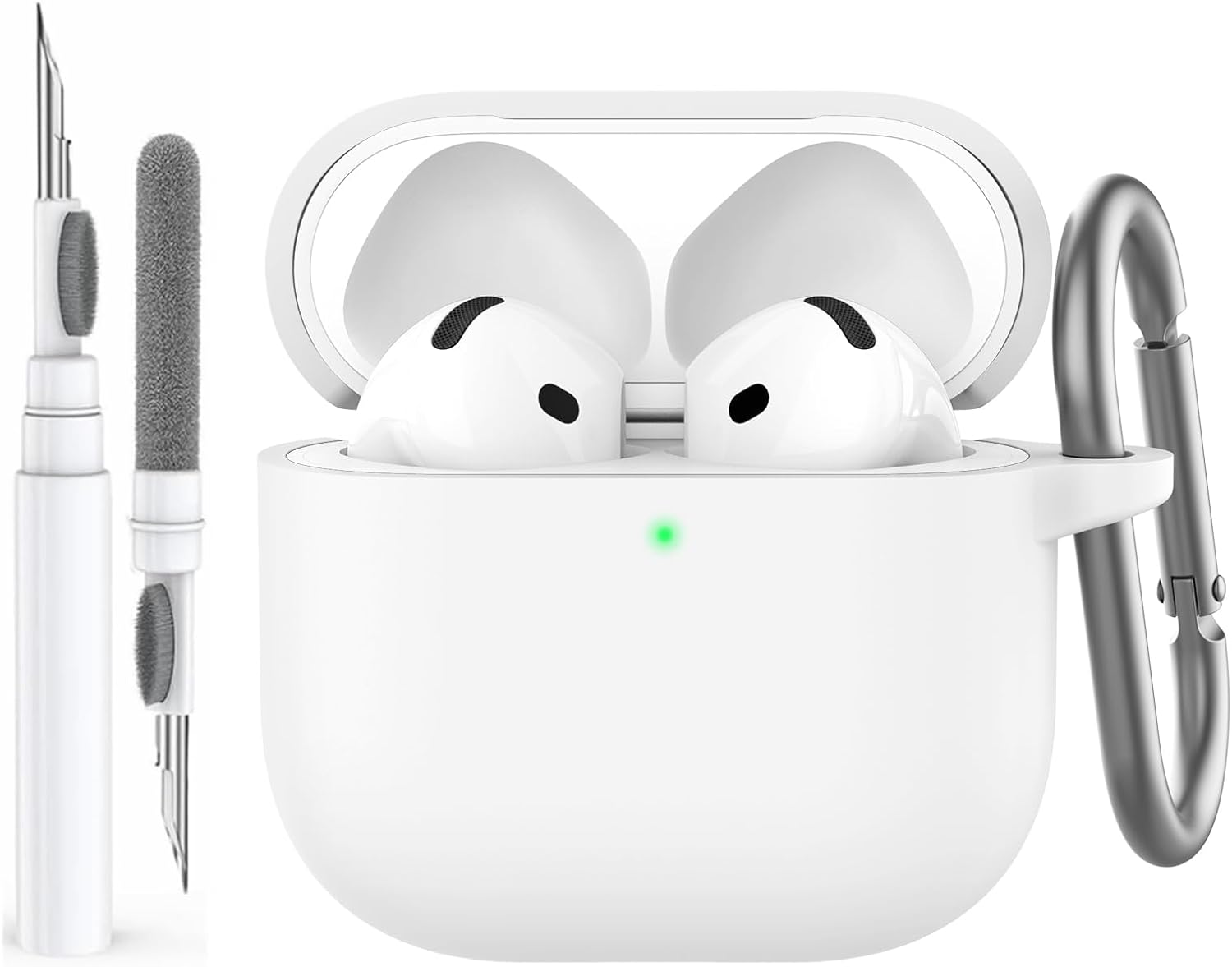 Калъф AhaStyle за AirPods 4 (2024) с почистваща писалка, първокласен силиконов калъф за AirPods 4-то поколение, калъф за цялото тяло на Apple AirPods 4, поддържа зареждане с USB-C кабел и безжично зареждане