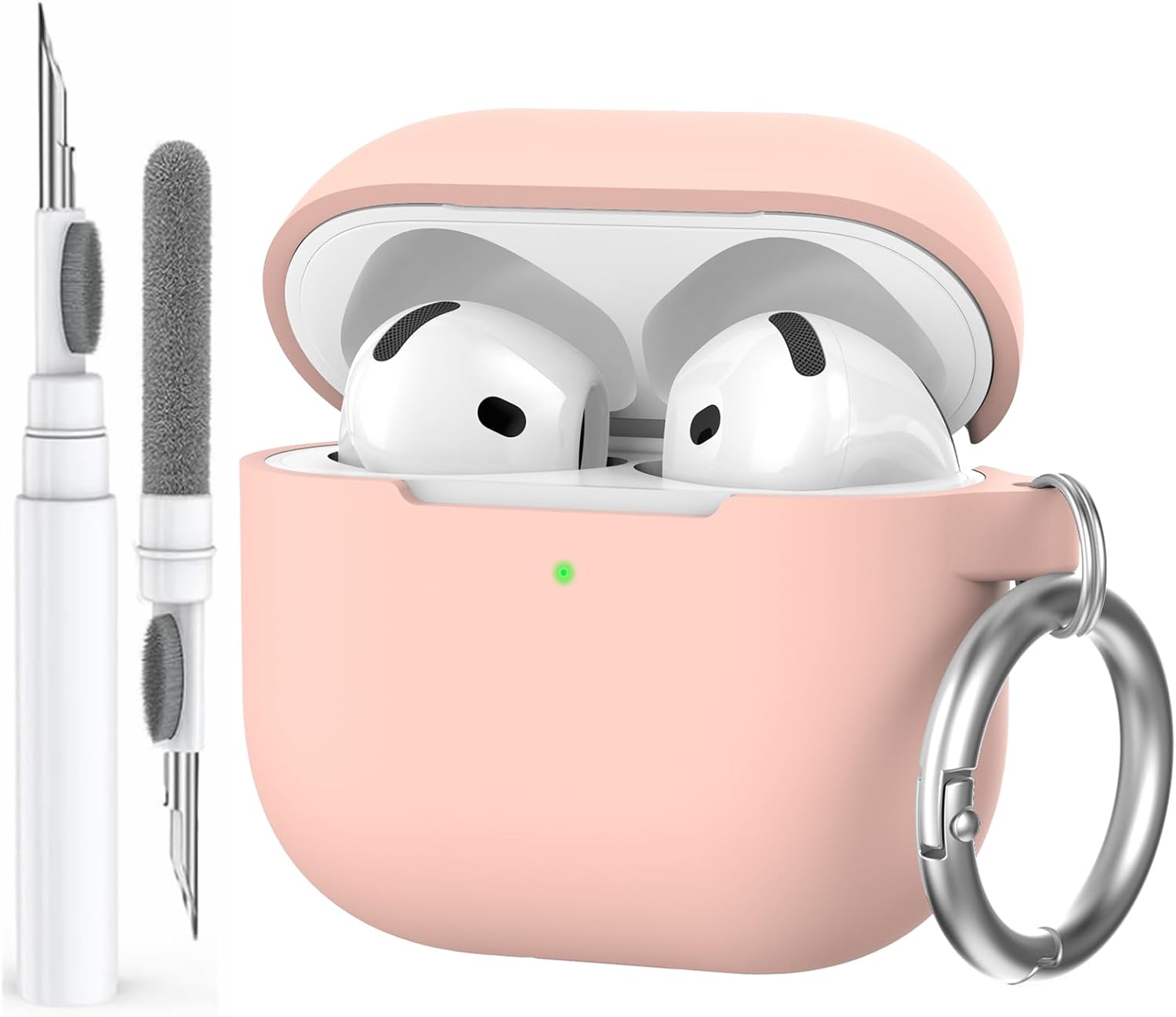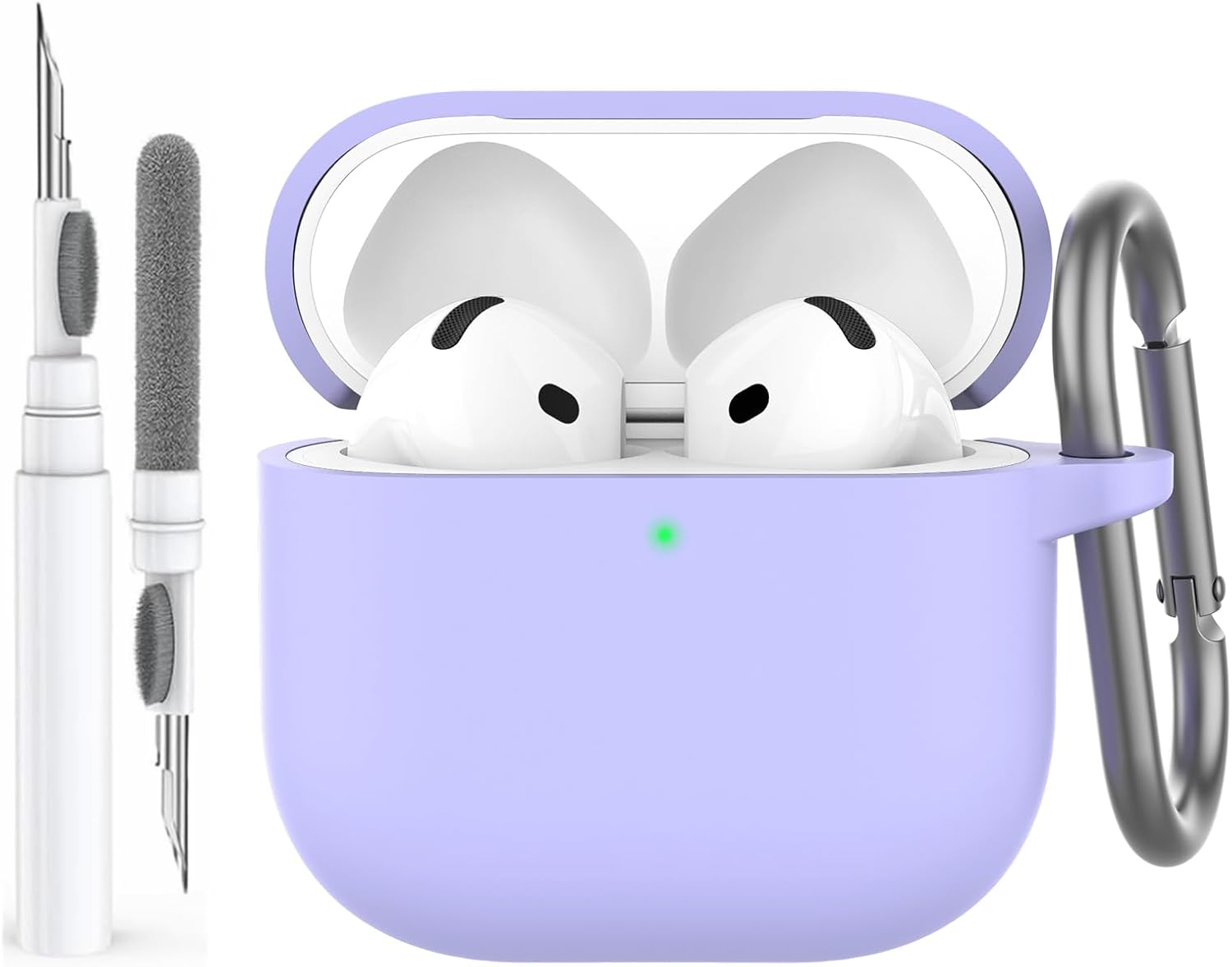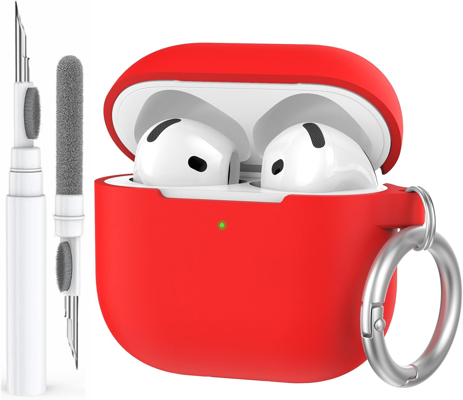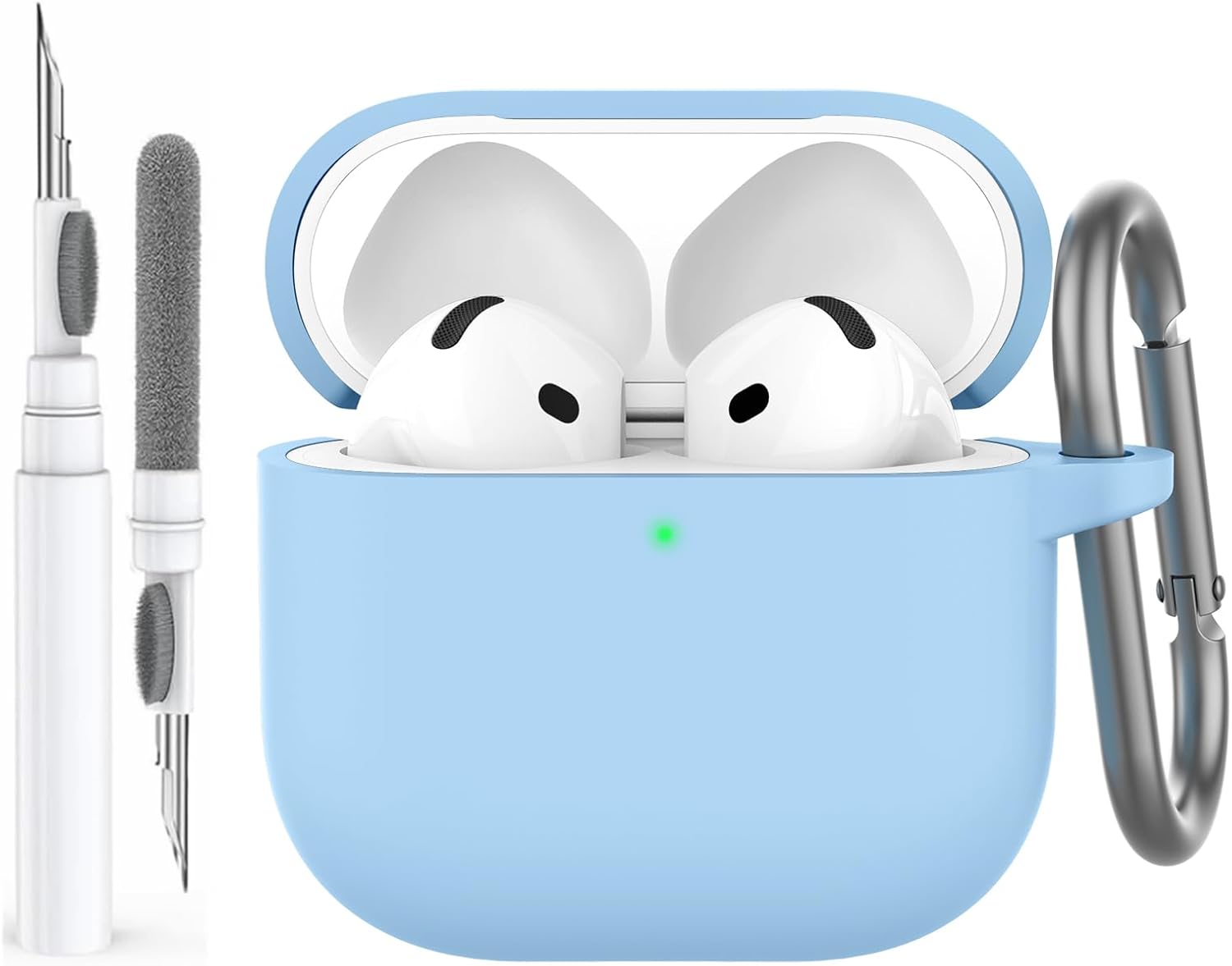 Калъф AhaStyle за AirPods 4 (2024) с почистваща писалка, първокласен силиконов калъф за AirPods 4-то поколение, калъф за цялото тяло на Apple AirPods 4, поддържа зареждане с USB-C кабел и безжично зареждане