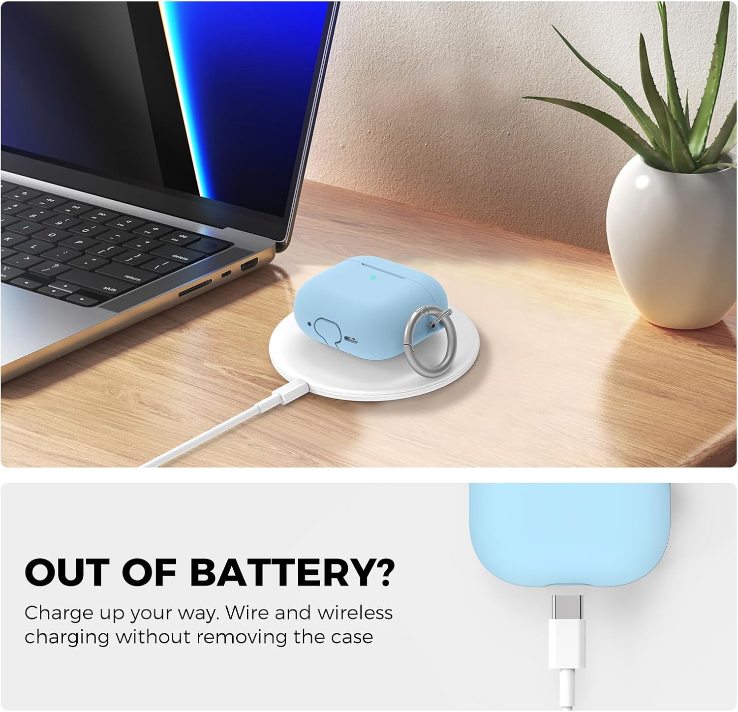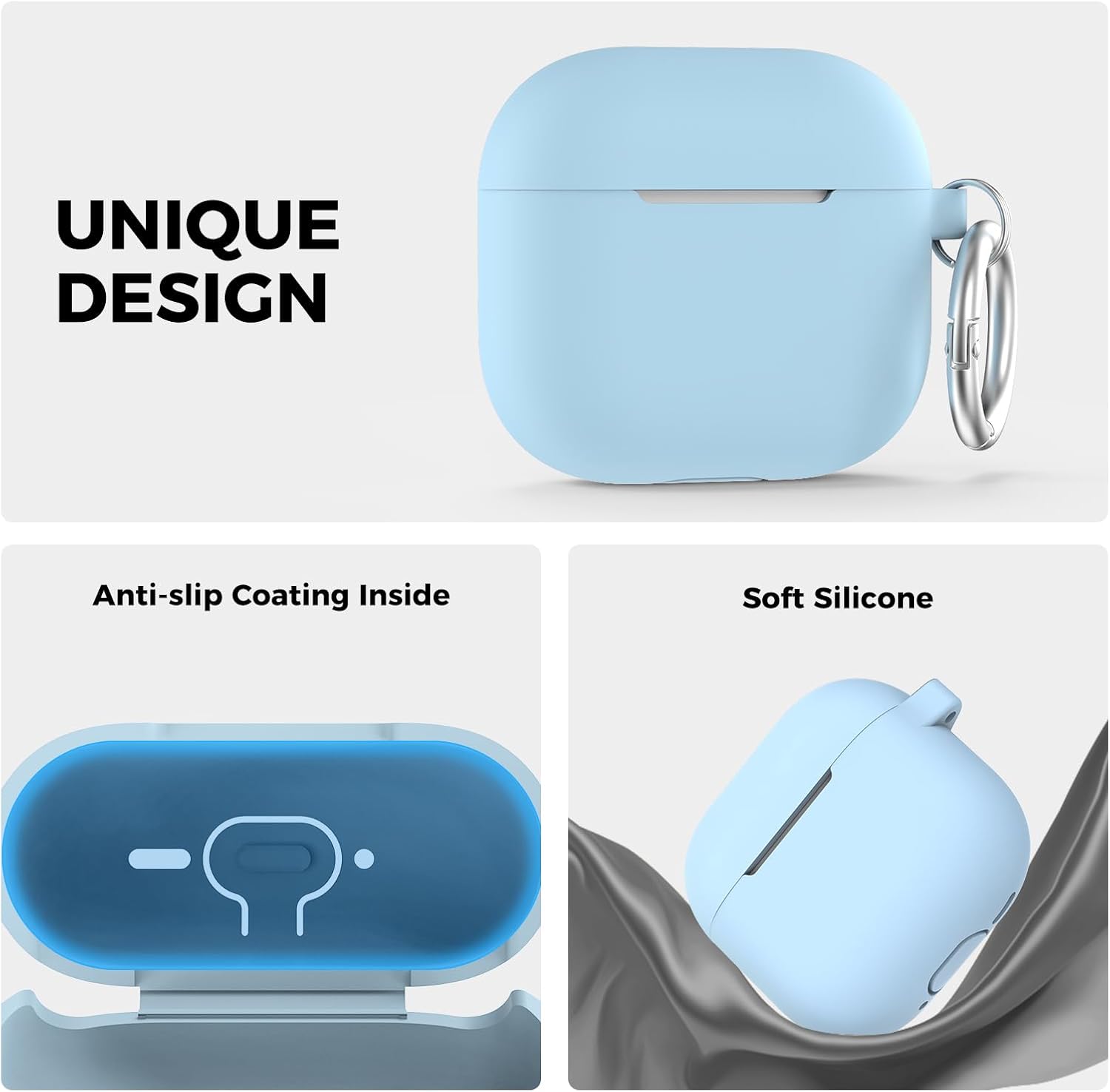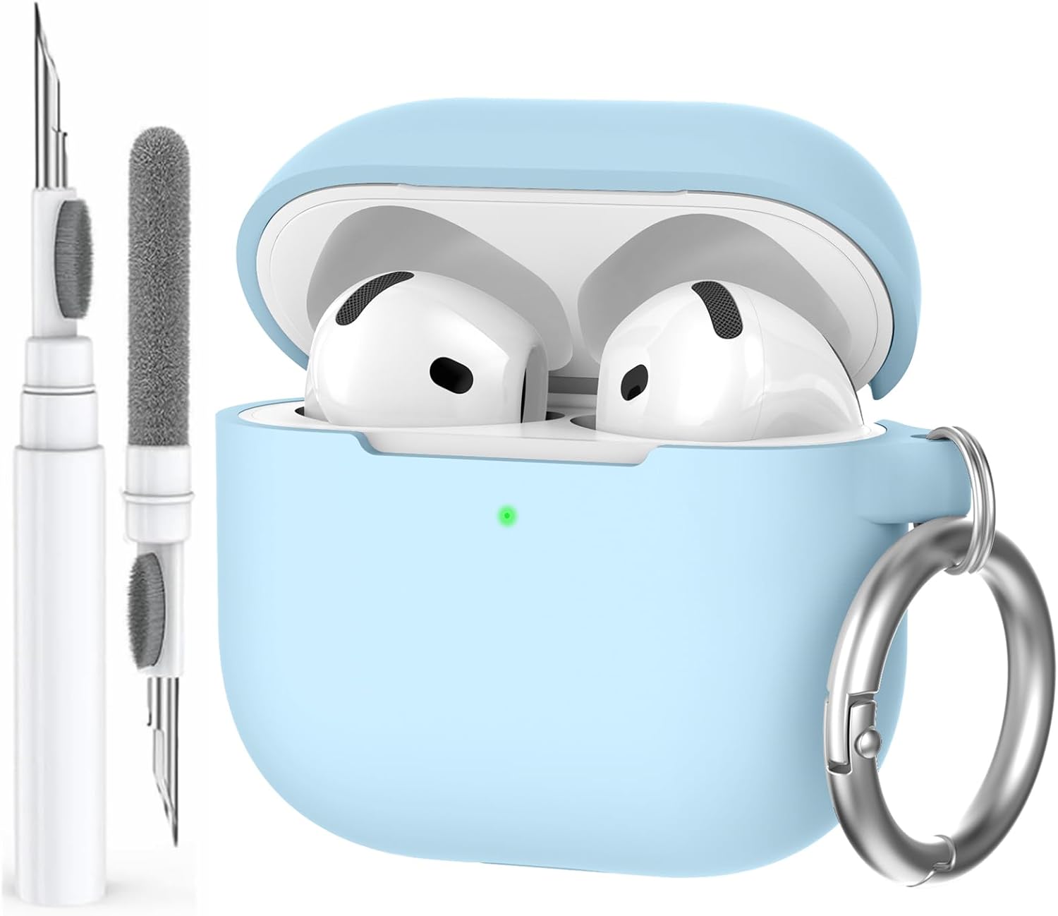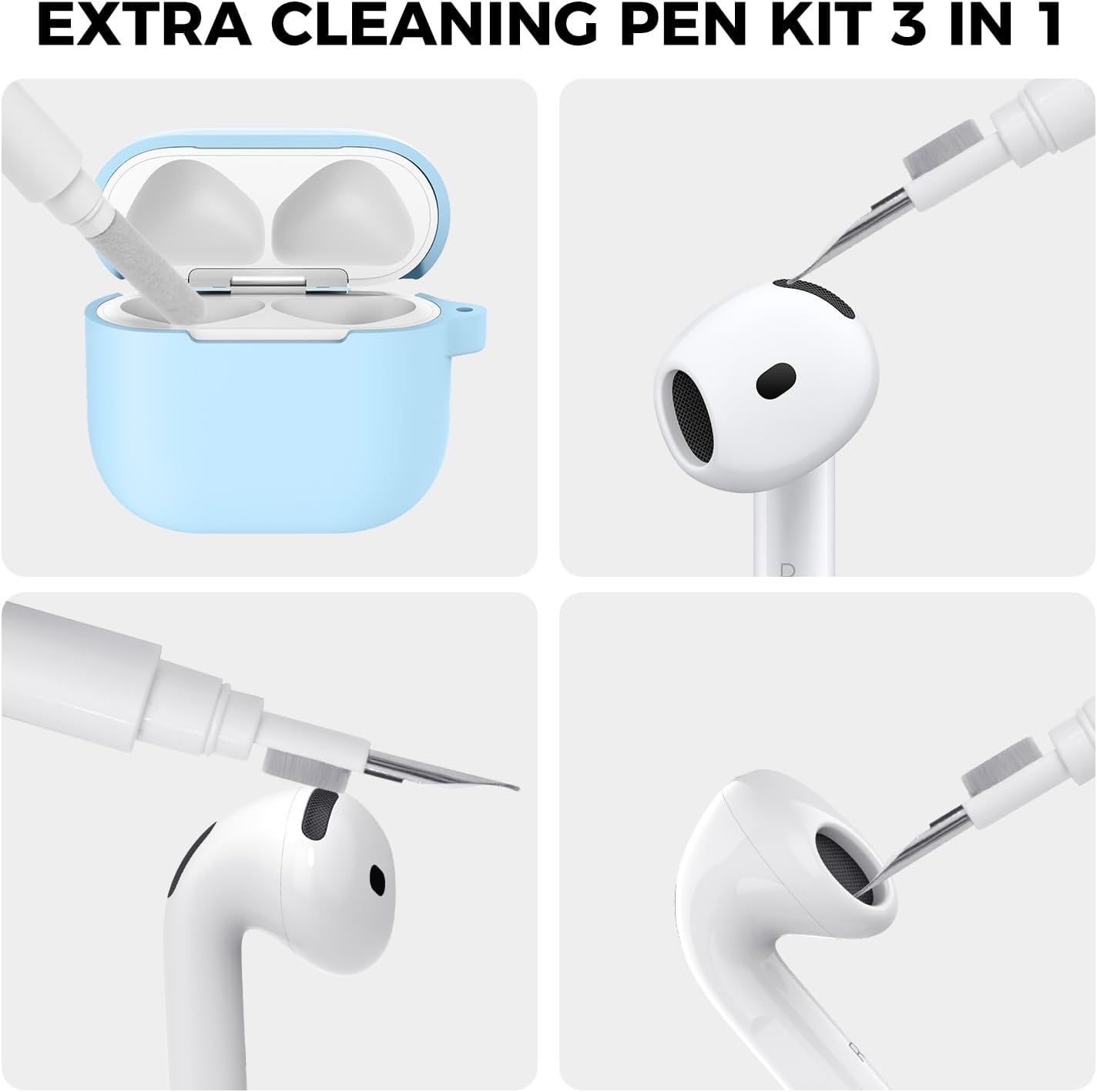 Калъф AhaStyle за AirPods 4 (2024) с почистваща писалка, първокласен силиконов калъф за AirPods 4-то поколение, калъф за цялото тяло на Apple AirPods 4, поддържа зареждане с USB-C кабел и безжично зареждане