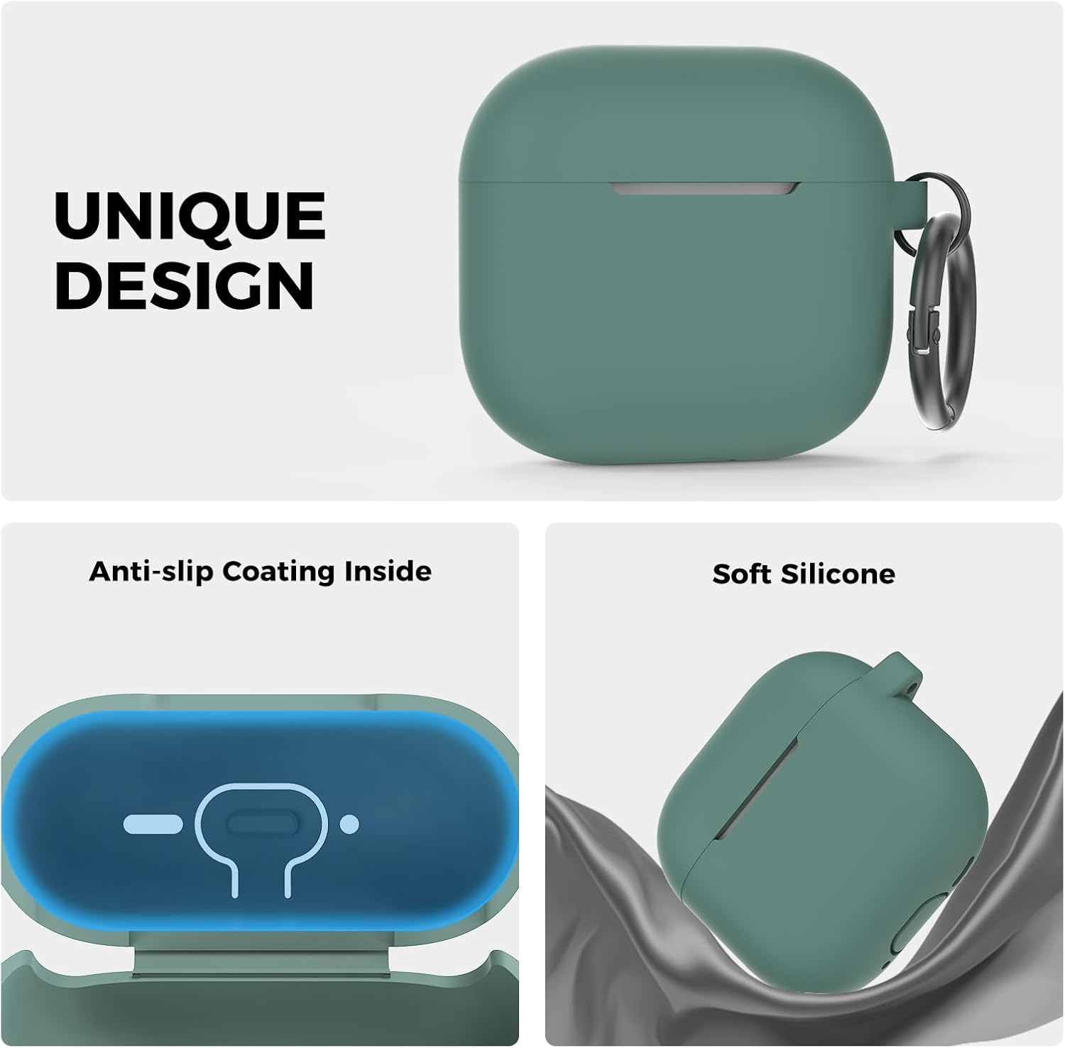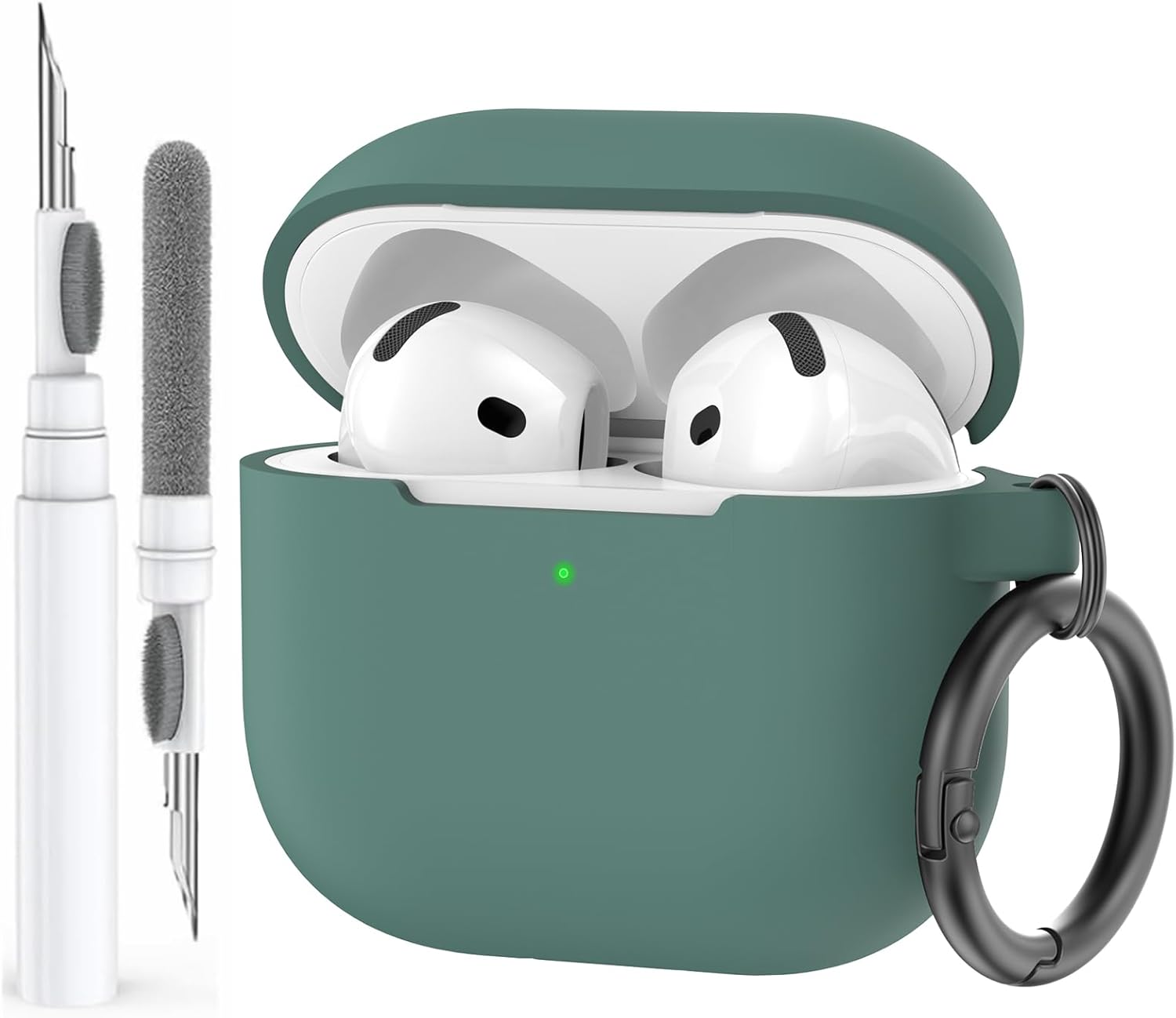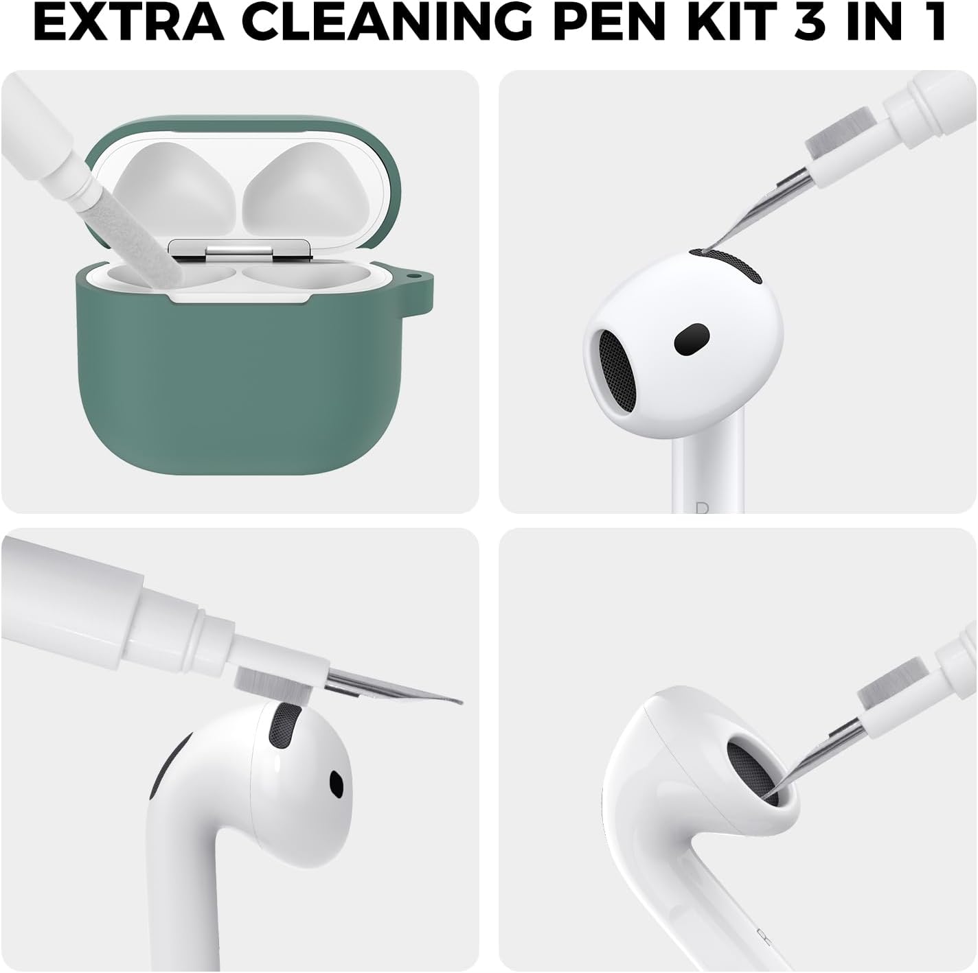 Калъф AhaStyle за AirPods 4 (2024) с почистваща писалка, първокласен силиконов калъф за AirPods 4-то поколение, калъф за цялото тяло на Apple AirPods 4, поддържа зареждане с USB-C кабел и безжично зареждане