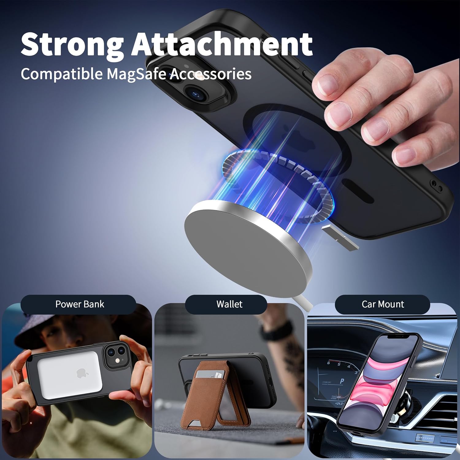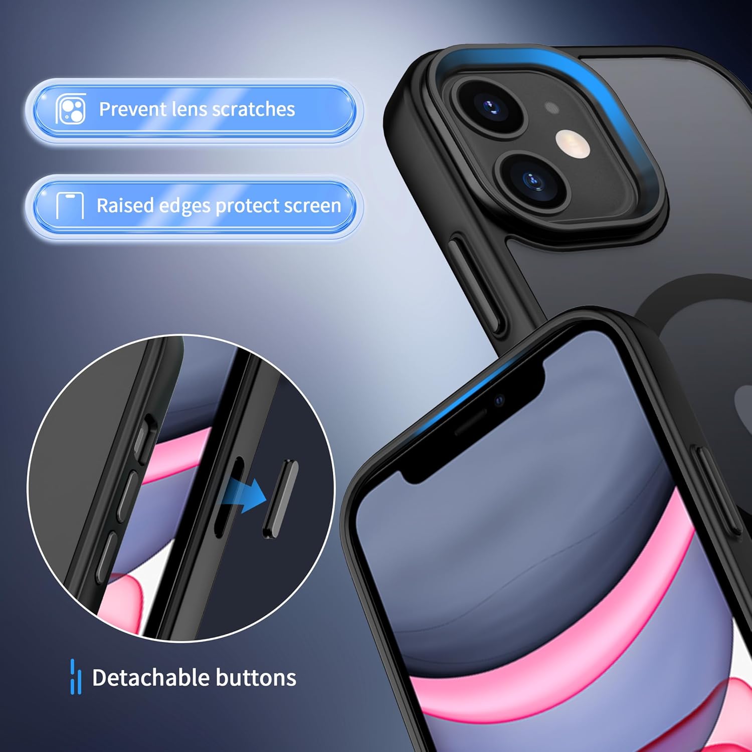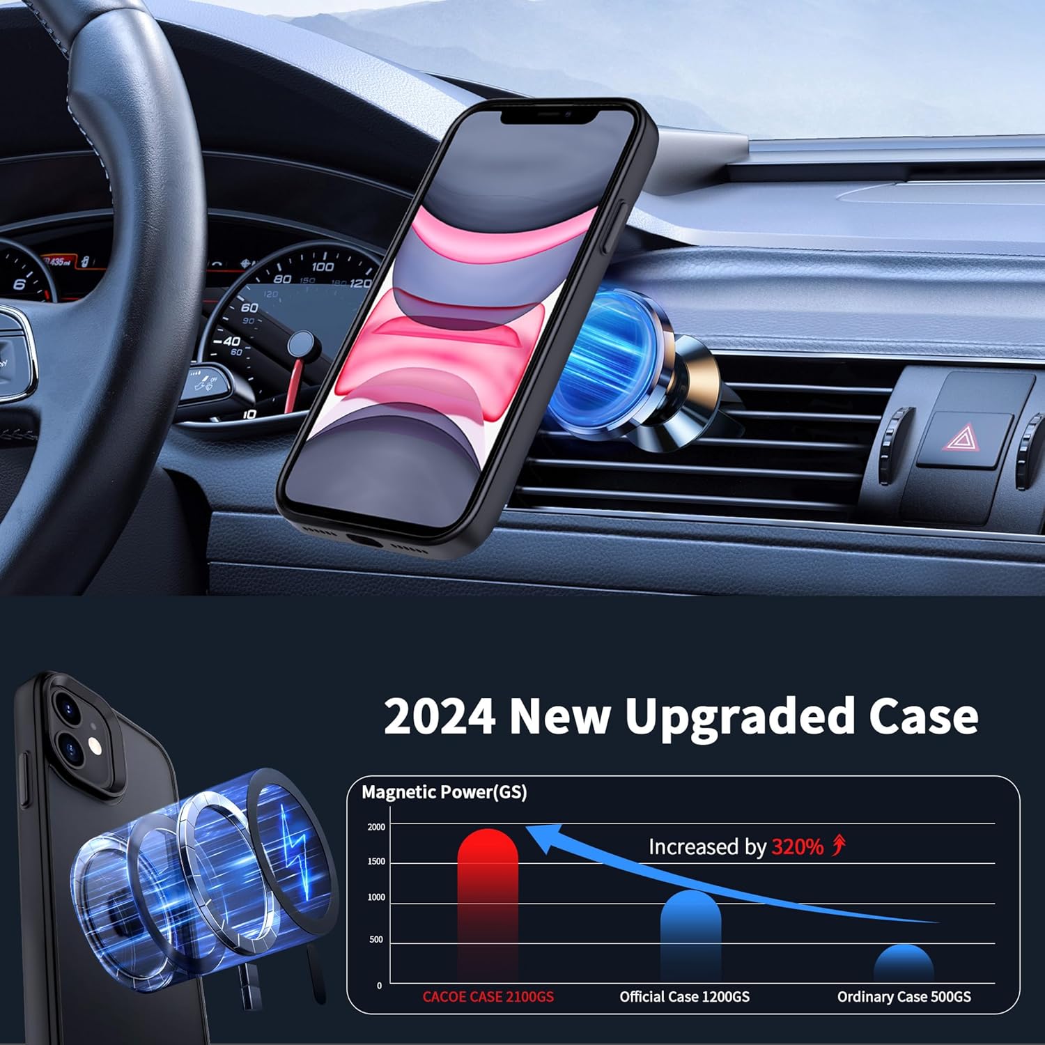 Калъф CACOE за iPhone 11 със защита на камерата, съвместим с MagSafe, удароустойчив, устойчив на надраскване, магнитен гръб, калъф за мобилен телефон за iPhone 11, прозрачен