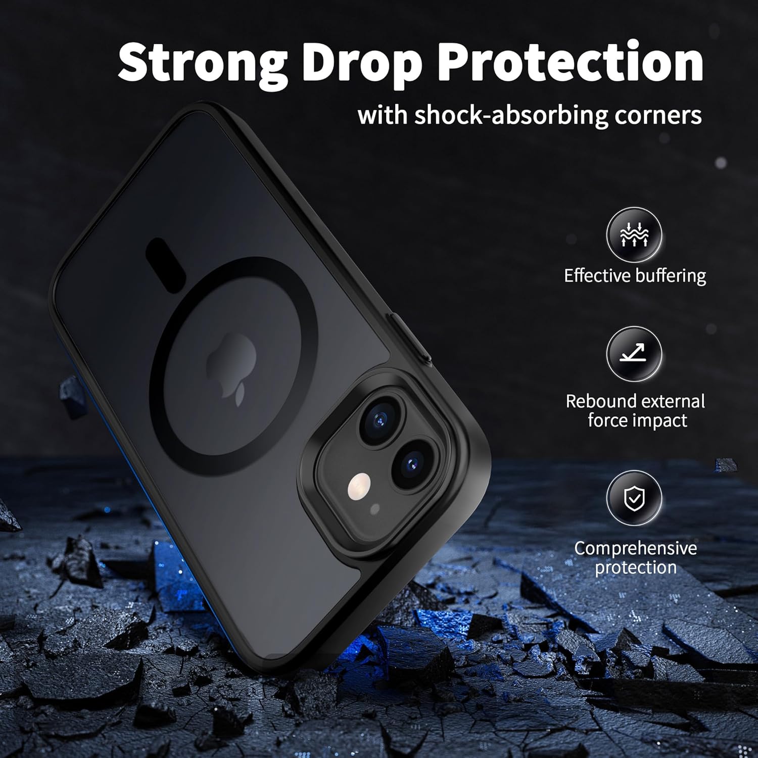 • Защита от 3 м, отговаряща на военни стандарти: Преминава тестове за падане и може да издържи на падания от височина до 3 м. Този матов заден капак за iPhone 15 е изработен от твърд поликарбонат (PC) с гъвкави, абсорбиращи ударите термопластични полиуретанови (TPU) подложки по краищата и разполага с четири въздушни възглавници в ъглите, които абсорбират ударите, предотвратявайки случайни падания, сблъсъци и надрасквания.