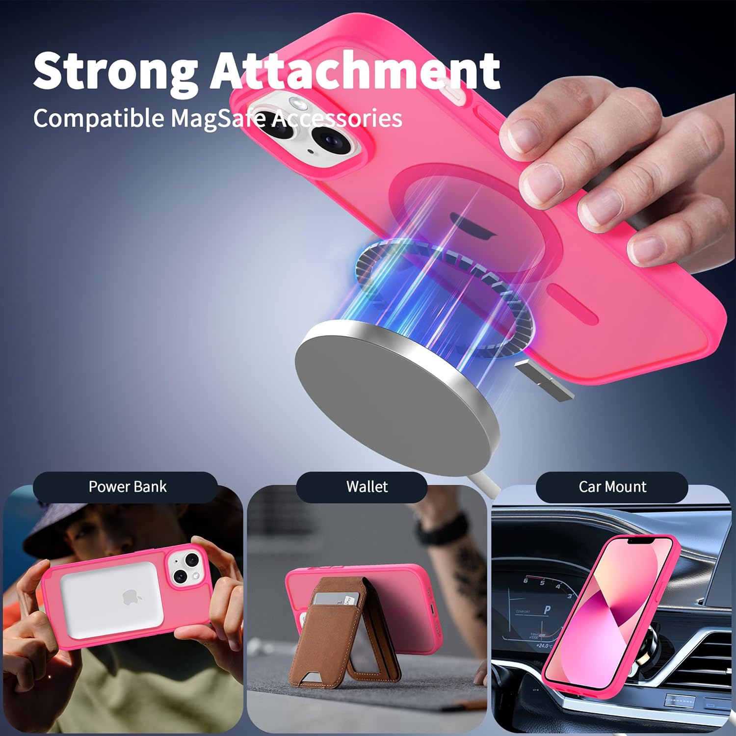 • Силен магнетизъм: Магнитният калъф за iPhone 15 е оборудван с 37 свръхсилни магнита N52, чиято магнитна сила е 2400 GS – седем пъти по-силна от тази на обикновените магнити. Следователно, той няма да падне, дори ако го разклатите енергично по време на зареждане. Съвместим е с MagSafe, магнитни портфейли, магнитни стойки за кола и магнитни зарядни устройства.