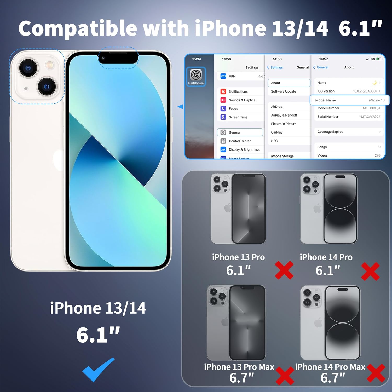 Калъф CACOE за iPhone 13/14 със защита на камерата, съвместим с MagSafe, удароустойчив, устойчив на надраскване, магнитен гръб, калъф за мобилен телефон за iPhone 13/14, прозрачен
