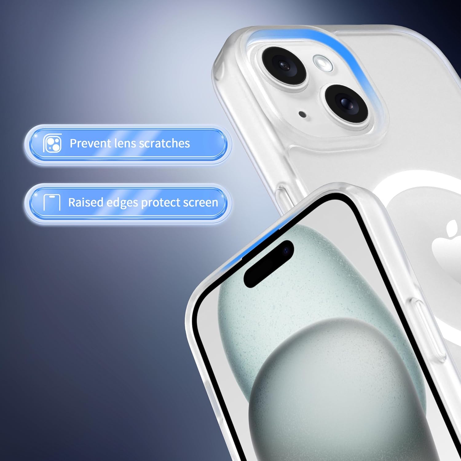 Калъф CACOE за iPhone 15 със защита на камерата, съвместим с MagSafe, удароустойчив, устойчив на надраскване, магнитен гръб, калъф за мобилен телефон за iPhone 15, прозрачен
