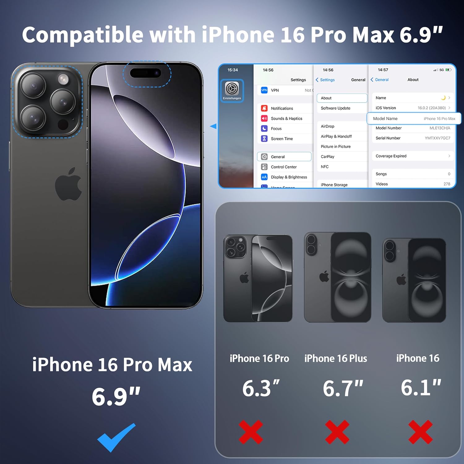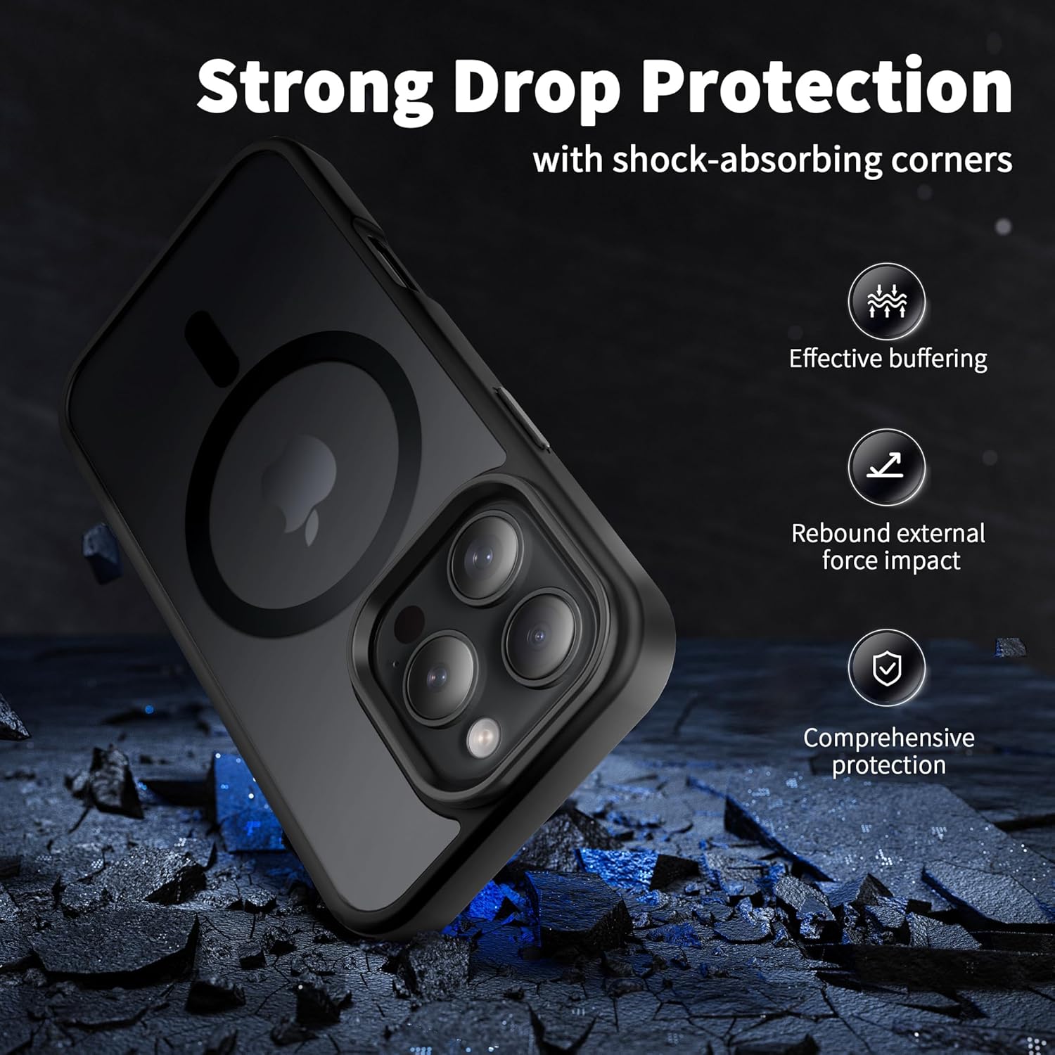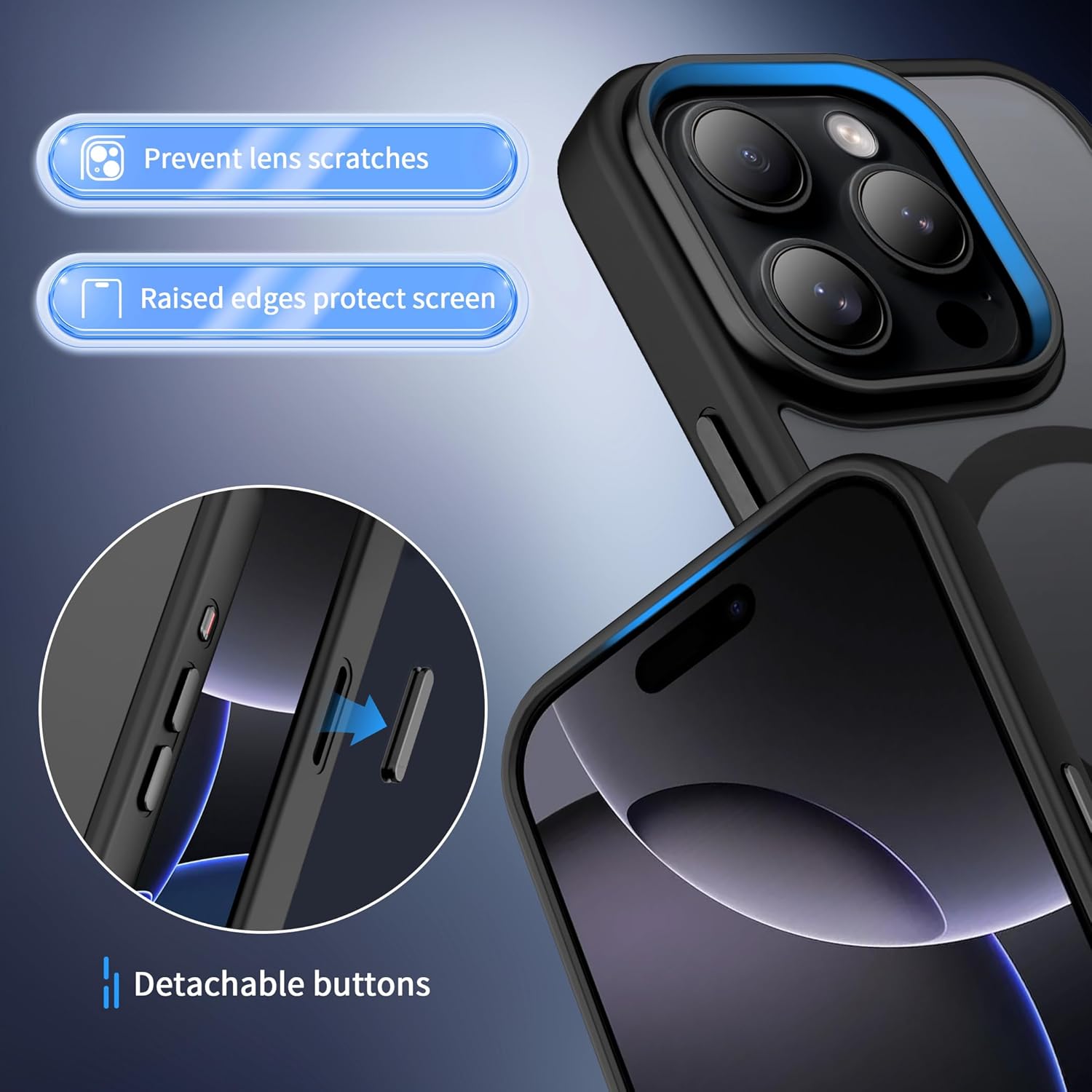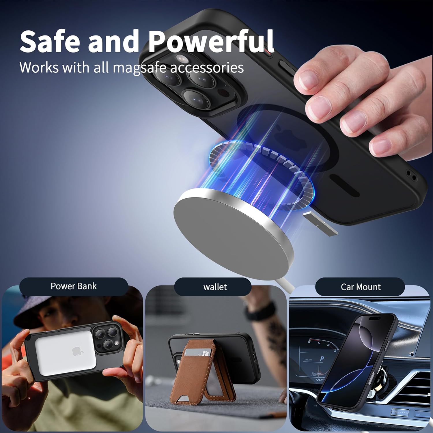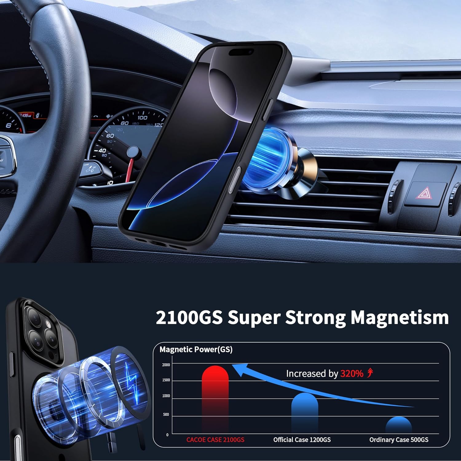 Калъф CACOE за iPhone 16 Pro Max със защита на камерата, съвместим с MagSafe, удароустойчив, устойчив на надраскване, магнитен гръб, калъф за мобилен телефон за iPhone 16 Pro Max, прозрачен калъф